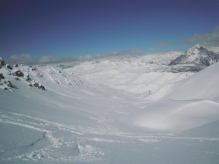 Ottime condizioni di innevamento; in discesa: dalla vetta fino al bosco sotto il Colle Chabaud bella neve polverosa , dalle Grange Chabaud fino a Rhuilles neve umida e collosa ma ancora sciabile senza troppi patemi, stradina fino a Thures semplice trasferimento per raggiungere la macchina.