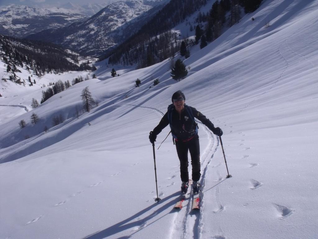 Tempo super, caldo giusto che ci ha permesso una discesa divertente su crosta portante(stando il più leggeri possibile)nella parte alta e in basso marcetta quanto basta per sciare bene. Solamente dalle Grange Chabaud molto marcia.