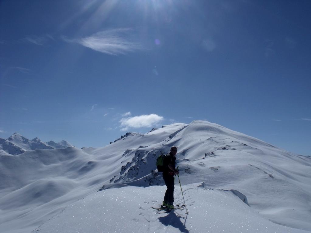 In macchina sino a metà strada per Ruilles, neve continua dal ponte e ottima traccia lungo la dorsale e la cresta fatta ieri da Gully92 che ringraziamo.