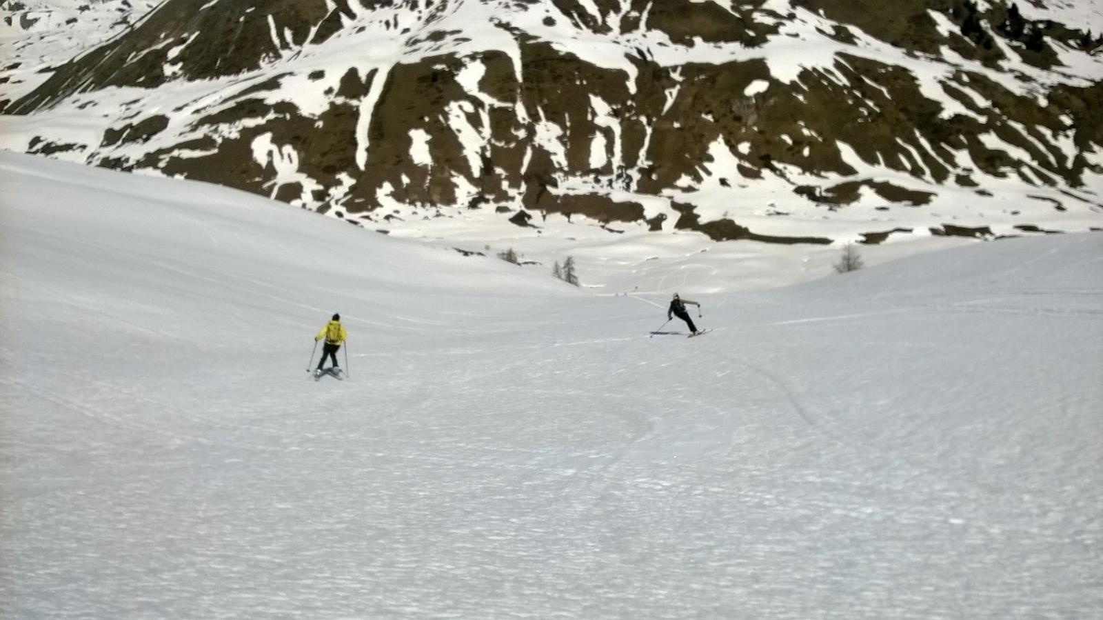 In discesa,grazie a Luigi,siamo riusciti ad arrivare al ponte con gli sci raccordando tutto il possibile