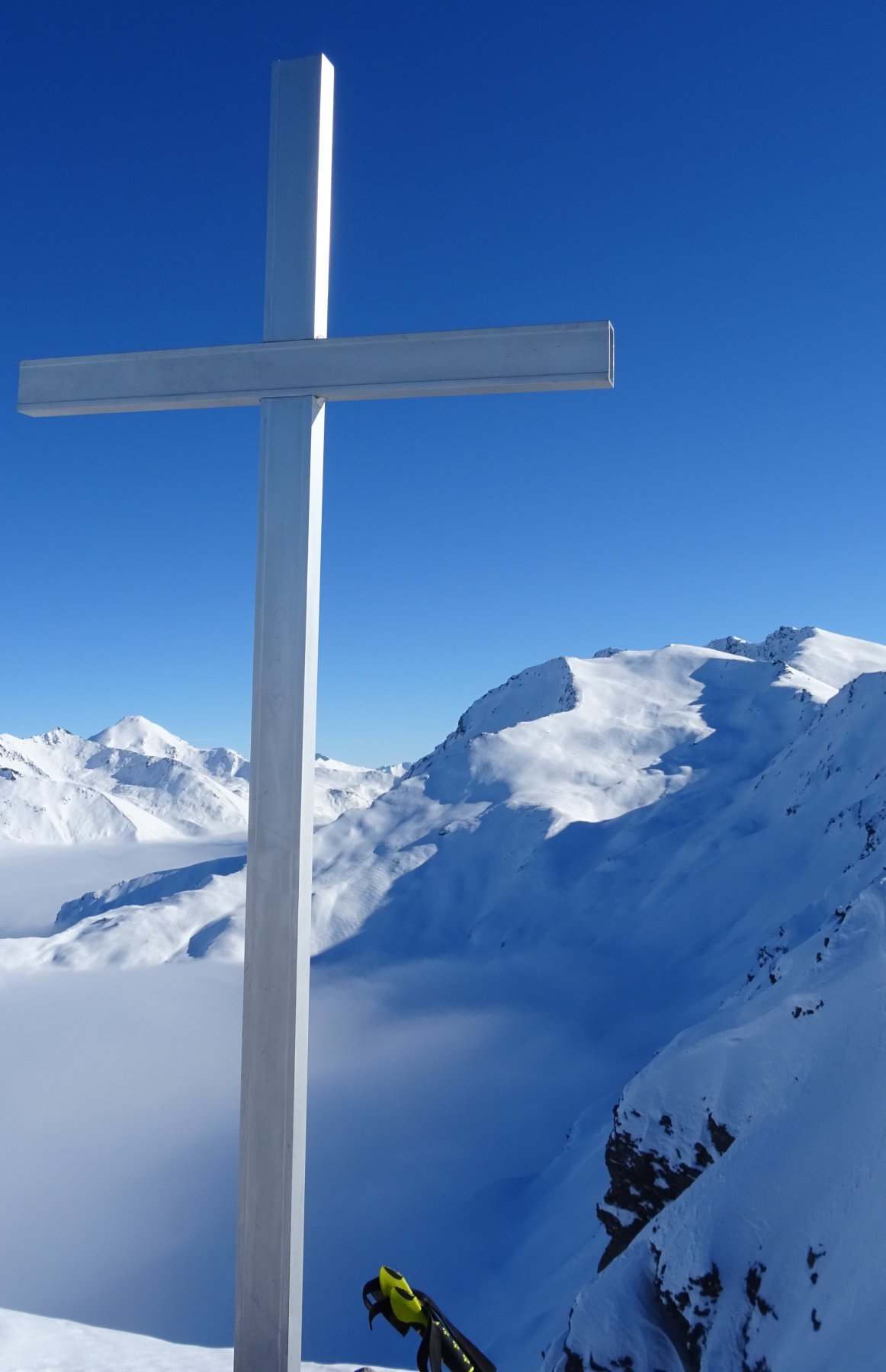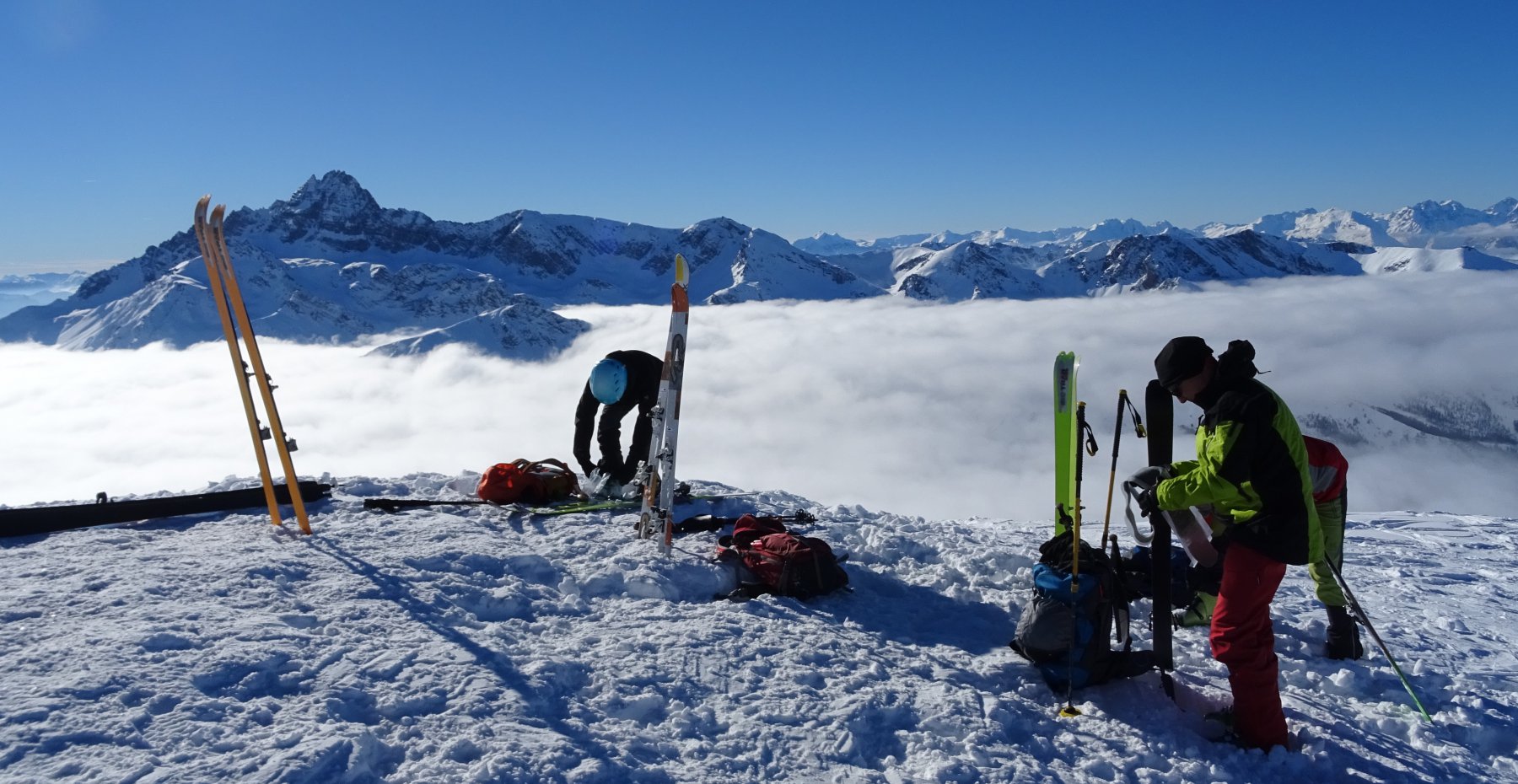 Arrivando in cima alle 13 abbiamo “bucato” a circa 2.700 mt e dopo una breve sosta ci siamo goduti la discesa (quasi per intero) con un’ottima visibilità, grazie alla progressiva apertura.