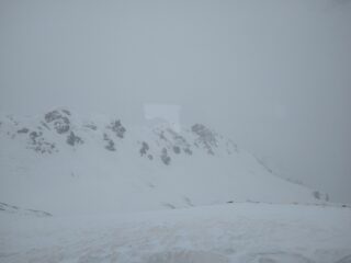 Oggi il meteo ci ha regalato una discesa alla cieca… peccato, tutto sommato la neve era portante, anche se con troppi segni di vecchi passaggi non ancora lisciati dalla fusione. Vento molto freddo in cima. Stradina iniziale ghiacciata al mattino e con copertura poco dopo le prime case.