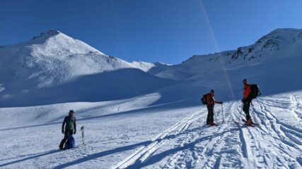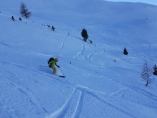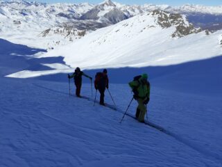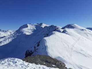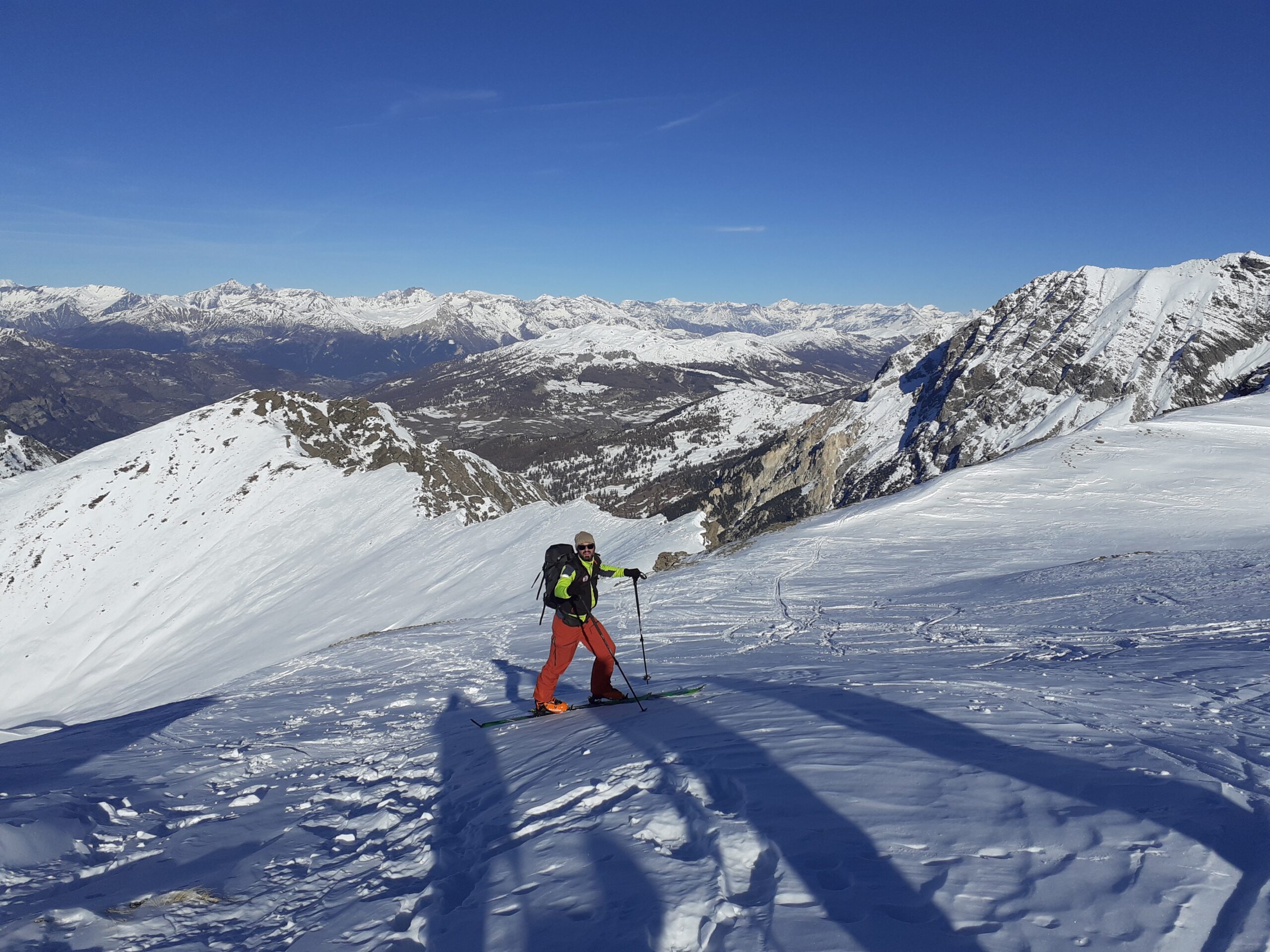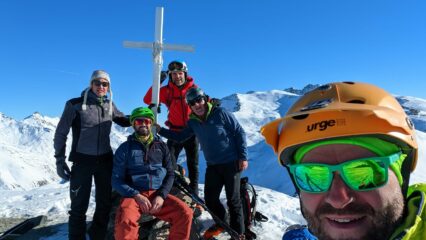 Giornata molto fredda con -12 gradi alla partenza. Strada fino a Rhouilles ghiacciata da percorrere a piedi e poi neve continua con buona traccia fino in vetta. Panorama al top con cielo senza nuvole. Neve ventata nella parte alta e poi sempre più bella e a tratti polverosa. Con Lelloz, Tiziano, Enrico e Danilo.
