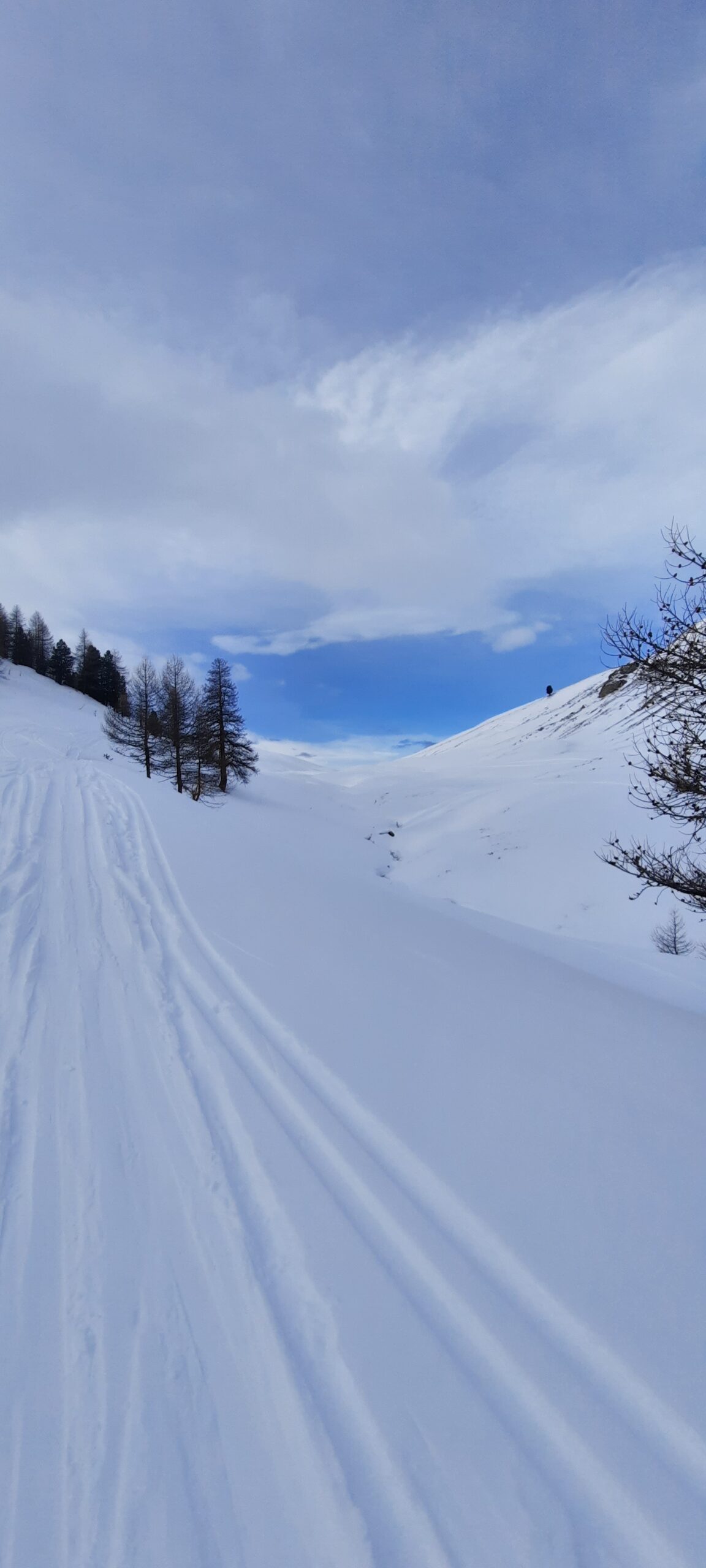 Raggiunto il pianoro di Thuras si prosegue lungo la strada salvo rientrare a Rhuilles e poi, volendo, spingendo fino a Thures sci ai piedi.