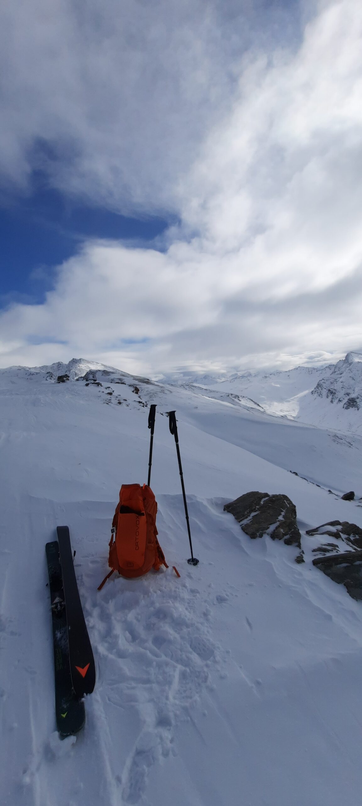 Passata la cima vera e propria della Dormillouse si arriva a sx, spalle alla cima, all’imbocco di un evidente canale piuttosto largo e poco ripido nei primi 30/40 metri; dopodiché la pendenza aumenta notevolmente ed il canale tende a stringere; non ho letto in nessuna gita di questo canale anche se mi sembra piuttosto battuto. Tanto per intenderci ci s’immette poi nella Val Thuras.