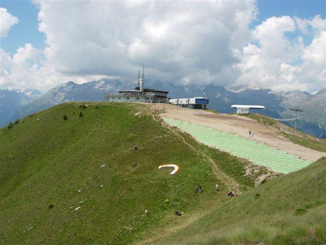 Dal paese di Pinzolo (60 km. da Trento) partono gli impianti, cabinovia a sei posti + seggiovia a quattroPosti che portano fino al decollo.