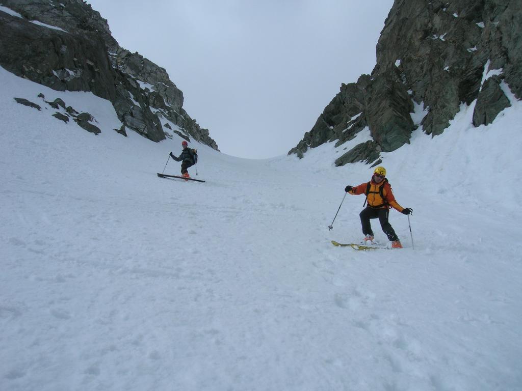 oggi e nata x caso visto il meteo incerto secondo previsioni .. ,poi si e rilevato gran blue ,ovvio non ce stato rigelo ma poco importa si va a vedere ,il canale e la splendente , si passa sotto la nord del viso e ci si ferma a pensare ma …. prima o poi …,mentre arriviam alla base del canale dario mi dice mettiam sci a spalla , fa allenamento .. , si sprofondava dalla caviglia al ginocchio a seconda poi su in alto un po meglio ma … che cul gratis , mio frate marco se le fatta con sci a 100 m dal colle ,poi tutti al colle foto,relax e cance dico a dario guarda la nord ovest del viso sembra in cundi ????. poi calziam sci e giu prime curve dopo derrappata fin dove il corraggio si e fatto vivo , poi solo goduria fin giu alla base su neve leggermente papposa ,con spazio sufficente tra le varie slavine ,dopo a remi fin all auto.grazie ai soci di gita dario e mio frat marco,. pausa spesa da amico davide panate’di causinere . e ci dice … sapete che ce stata la seconda ripetizione della nord ovest !!!!!ci informeremo . saluti a tutti.