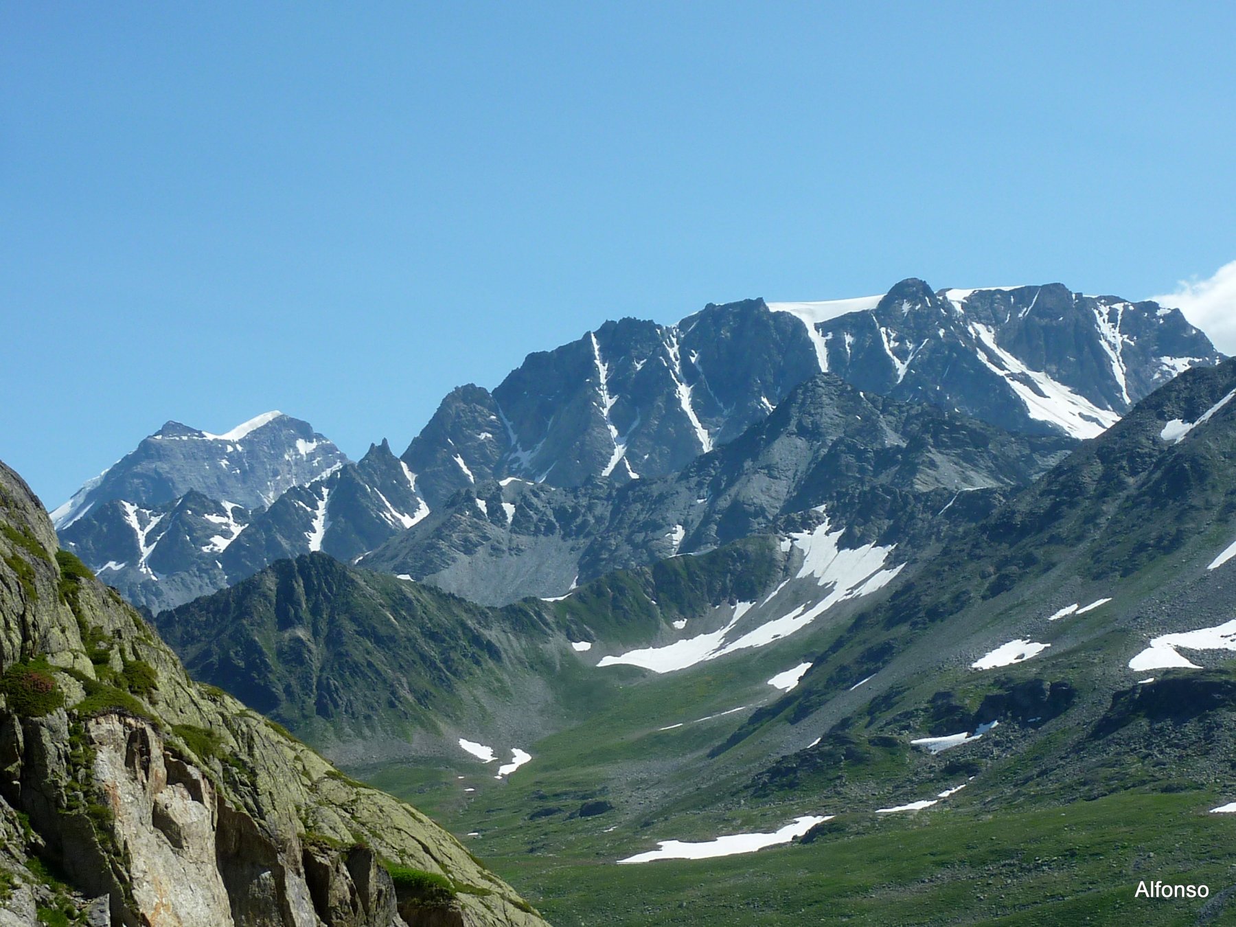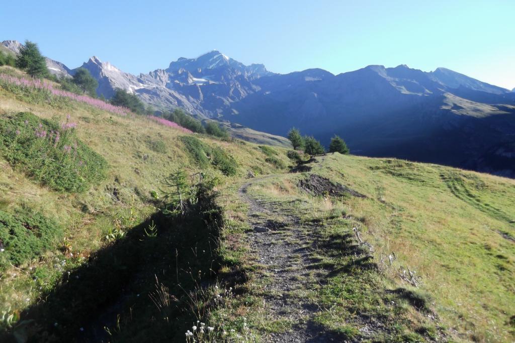 Poi ripida morena e traverso finalmente al Col de Mille mt 2473. Al colle ,dopo una sosta alla Cabane de Mille, prendere il sentiero che a sx rispetto al l’arrivo al colle, in mezzacosta e poi in leggera salita ,porta ad un nuovo sterrato.