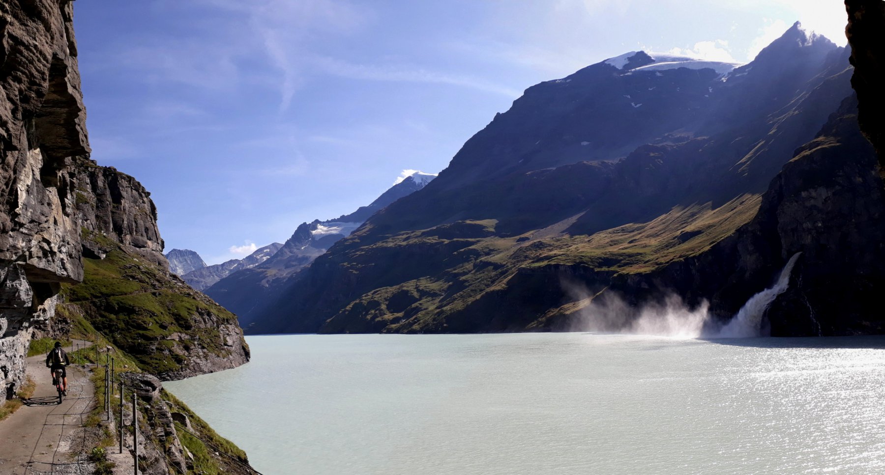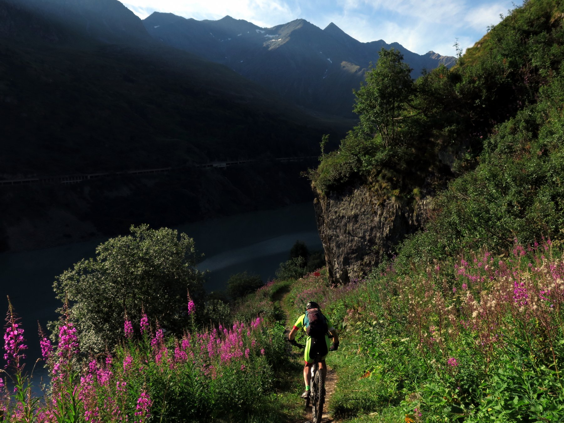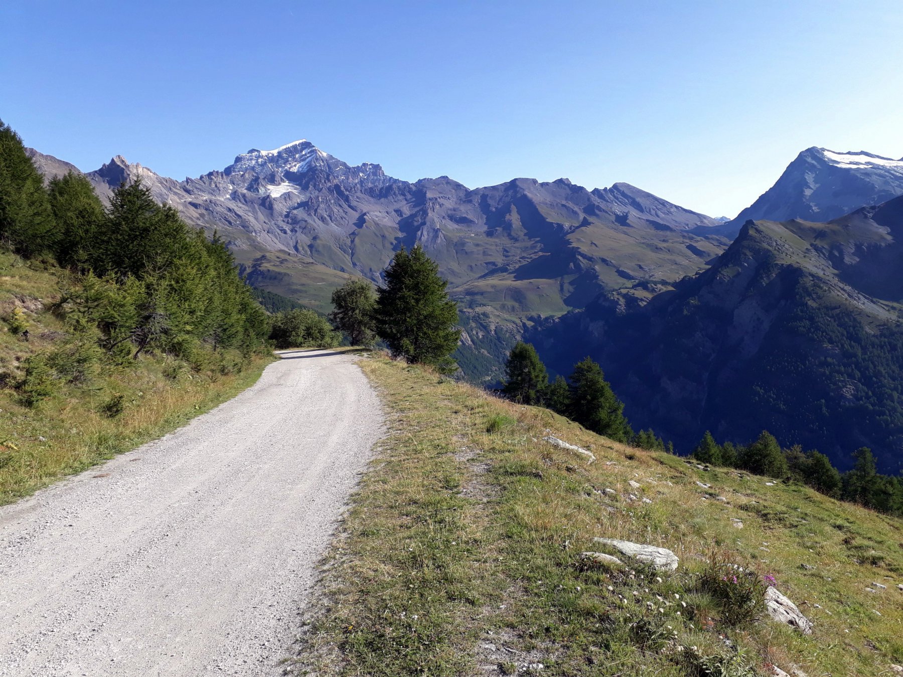 Dalla Cabane de Chanrion ridiscendere allo sterrato fino nei pressi del ponte del giorno prima.Non scendere al ponte ma proseguire diritto sullo sterrato fino all’ alpeggio Boussine. Continuare ora per il magnifico lungo lago sx indrografica del Lac de Mauvoisin.