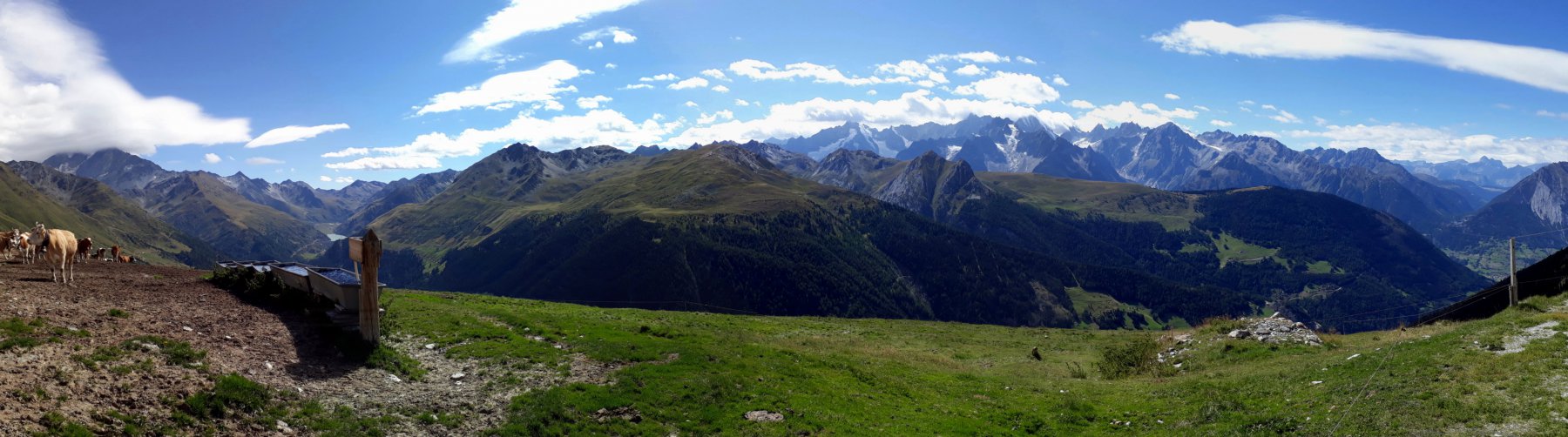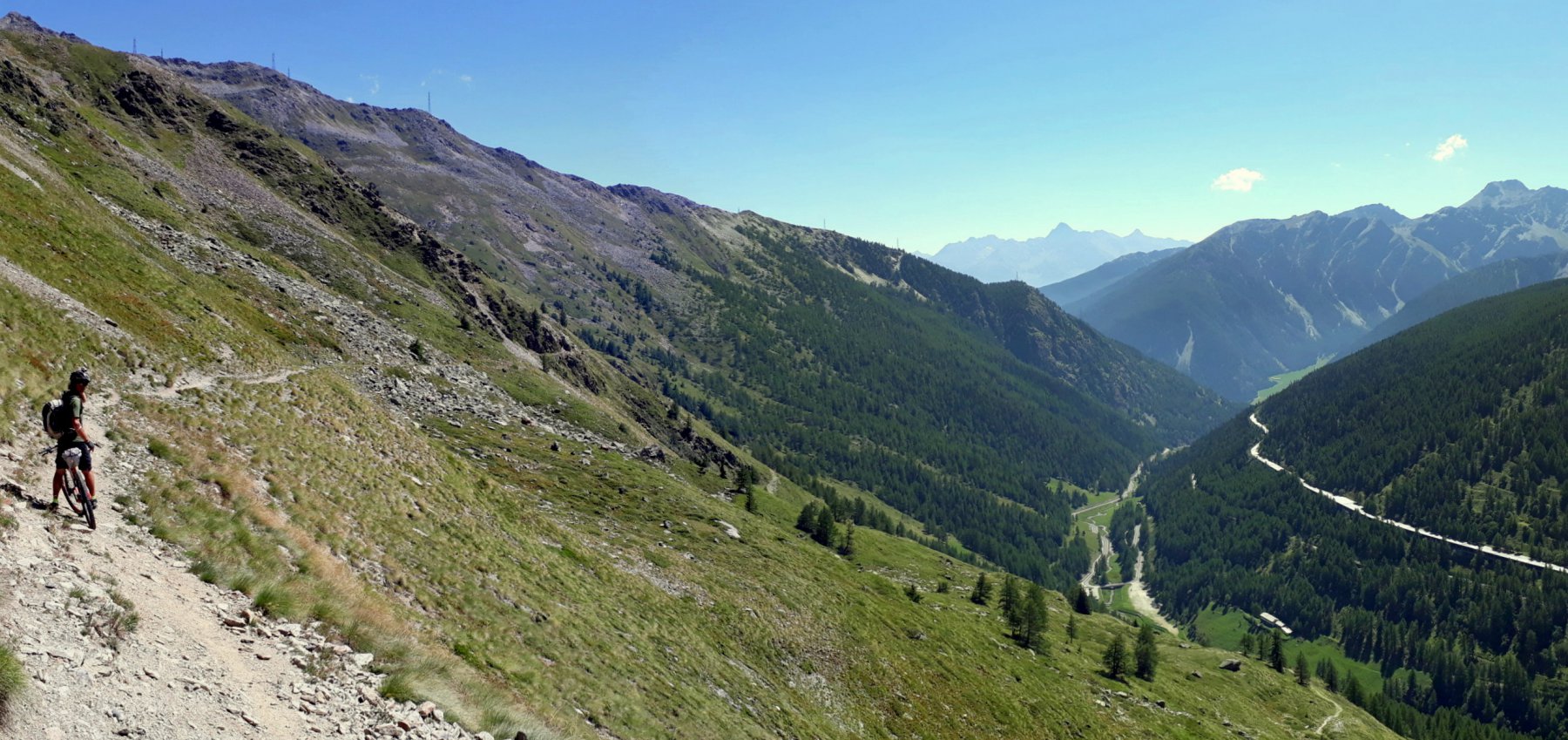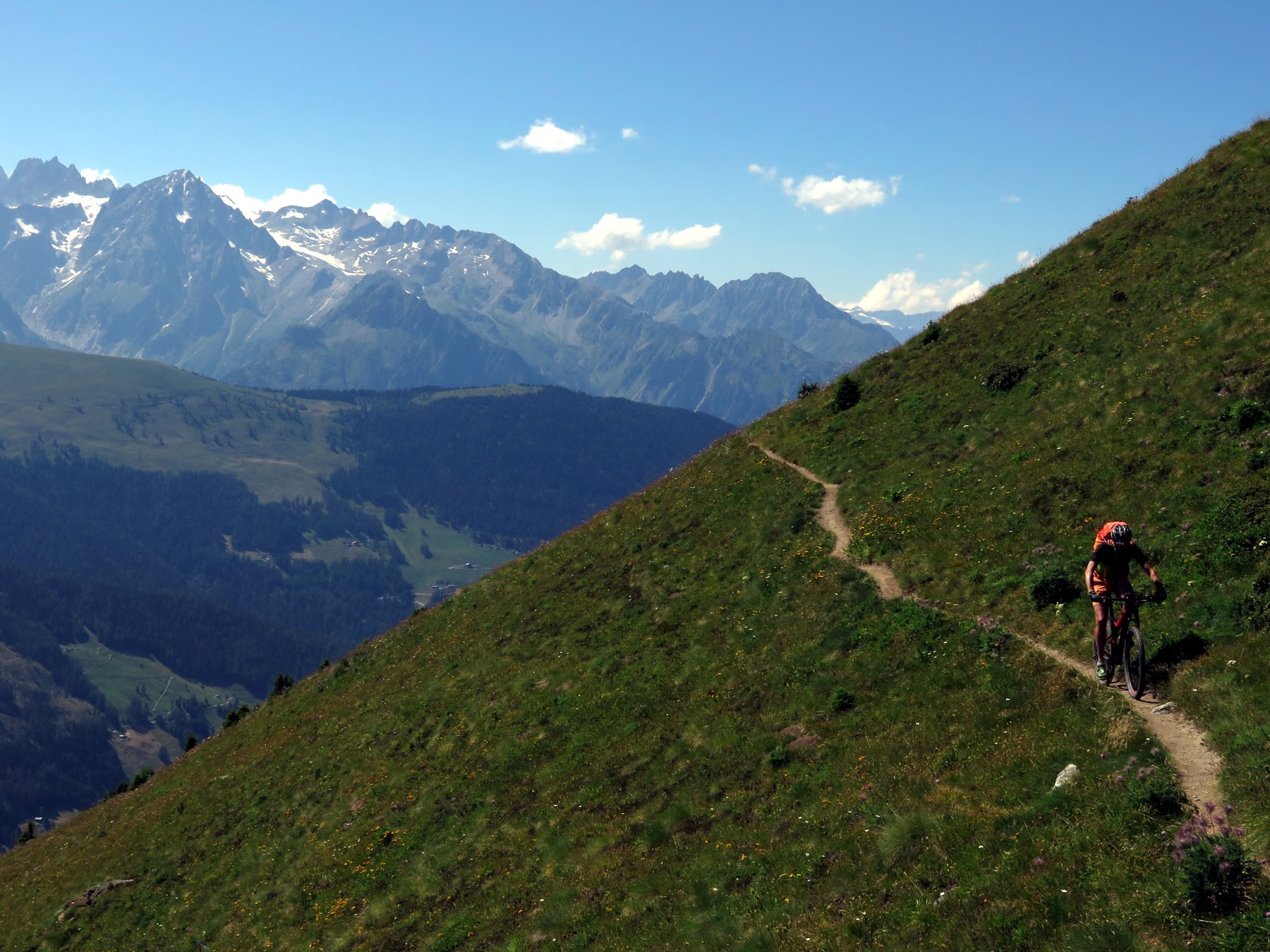 Lunghissima salita tutta ciclabile fino all’ultimo tornante ove in prossimita’ di un parcheggio si imbocca a dx, il sentiero per il Col de Mille. Inizia un lungo pezzo (almeno 3 ore) dove di ciclabilita’ se ne parla poco. Toccare alpeggi Sevay, Alpeggi La Chaux.