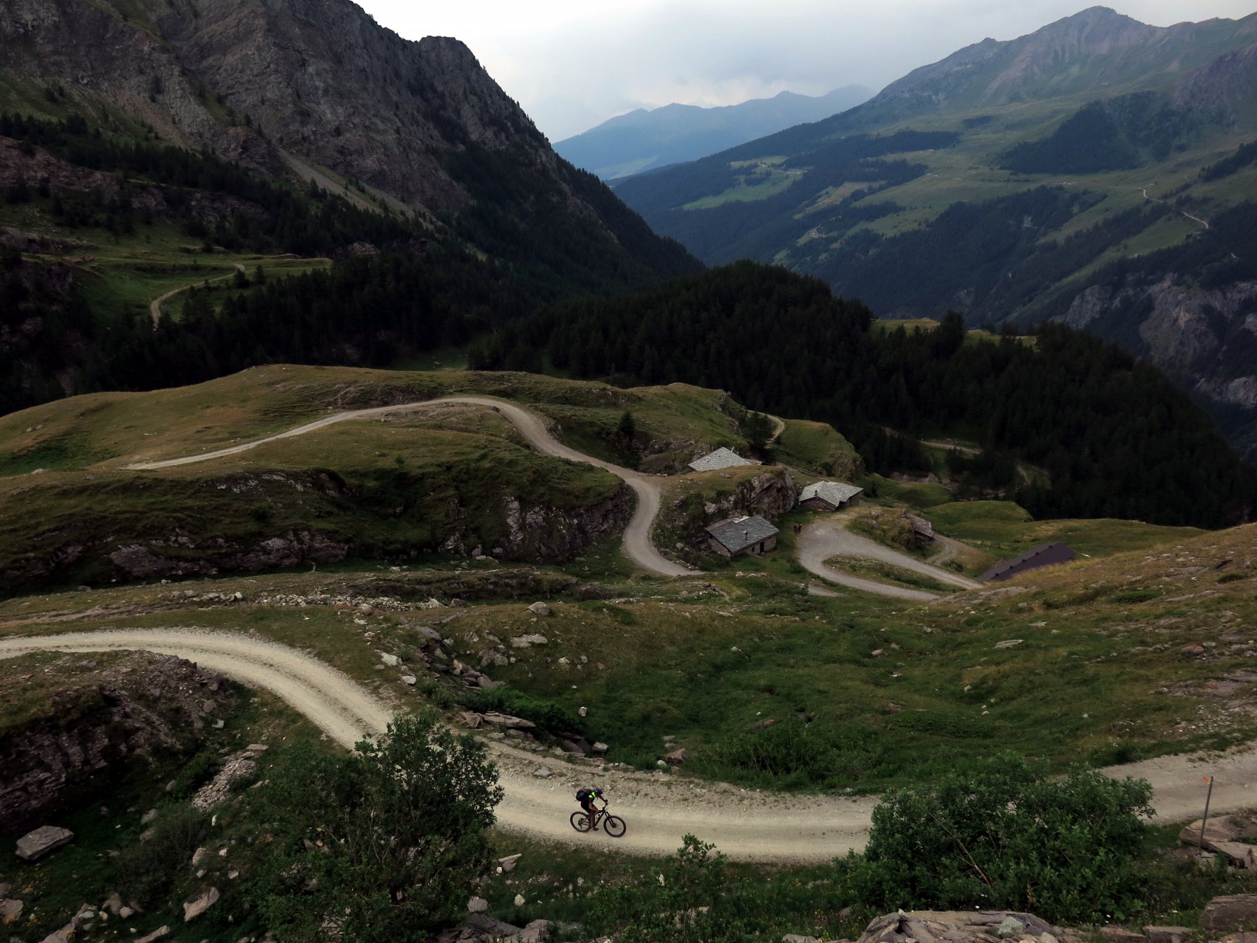 Scesi dal colle , dopo pochi tornanti , alla prima casa cantoniera mt 2218. imboccare a sx lo sterrato che ampio,ciclabile scende rapidamente su S. Rhemy.