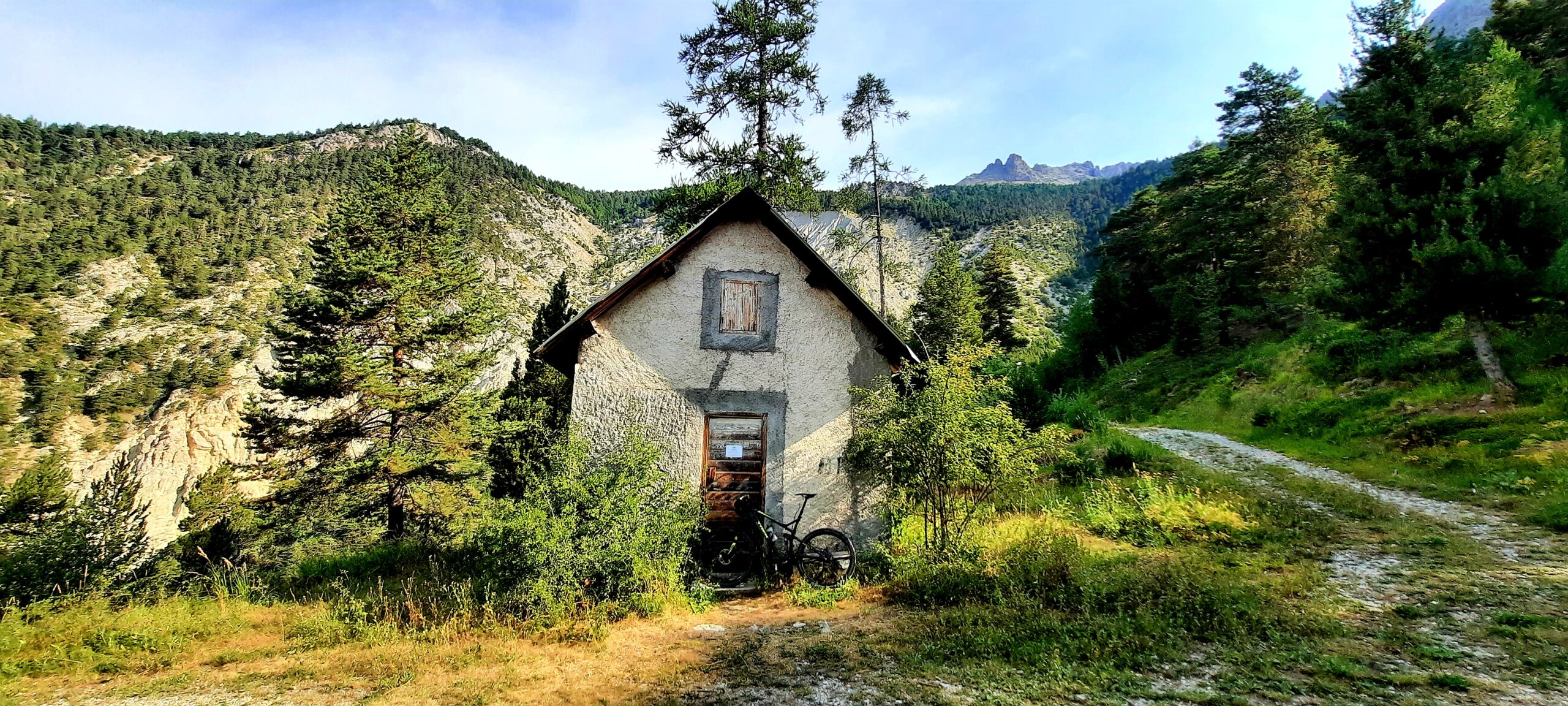 Si segue la forestale che su pendenze mai proibitive ed ottimo fondo descrive un lunghissimo traverso interrotto da pochi tornanti fino alla Cabane du Bois Durat (1540 m).