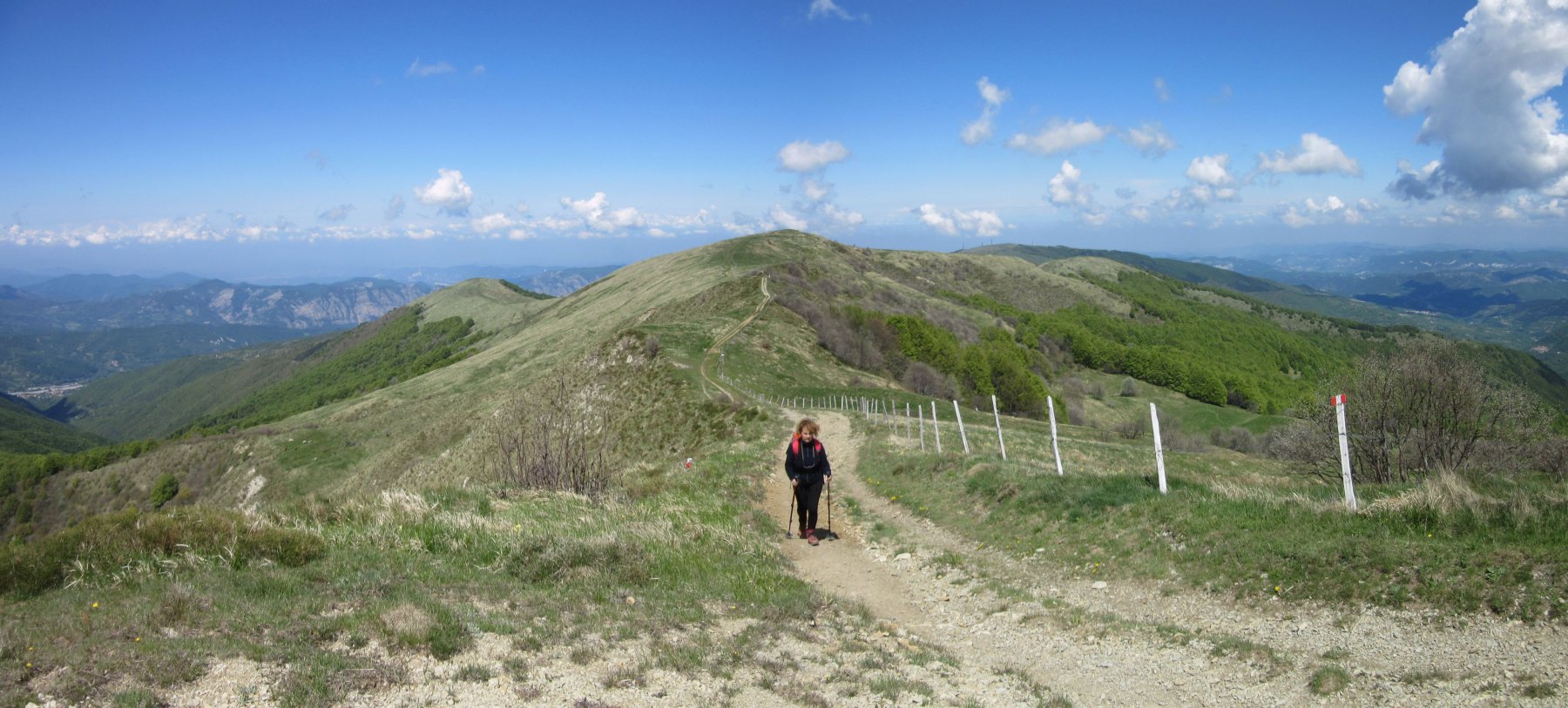 Giunti sul crinale svoltare a sx e talvolta con ripidi strappi raggiungere la cima dei monti Panà, Cosfrone e Ebro.