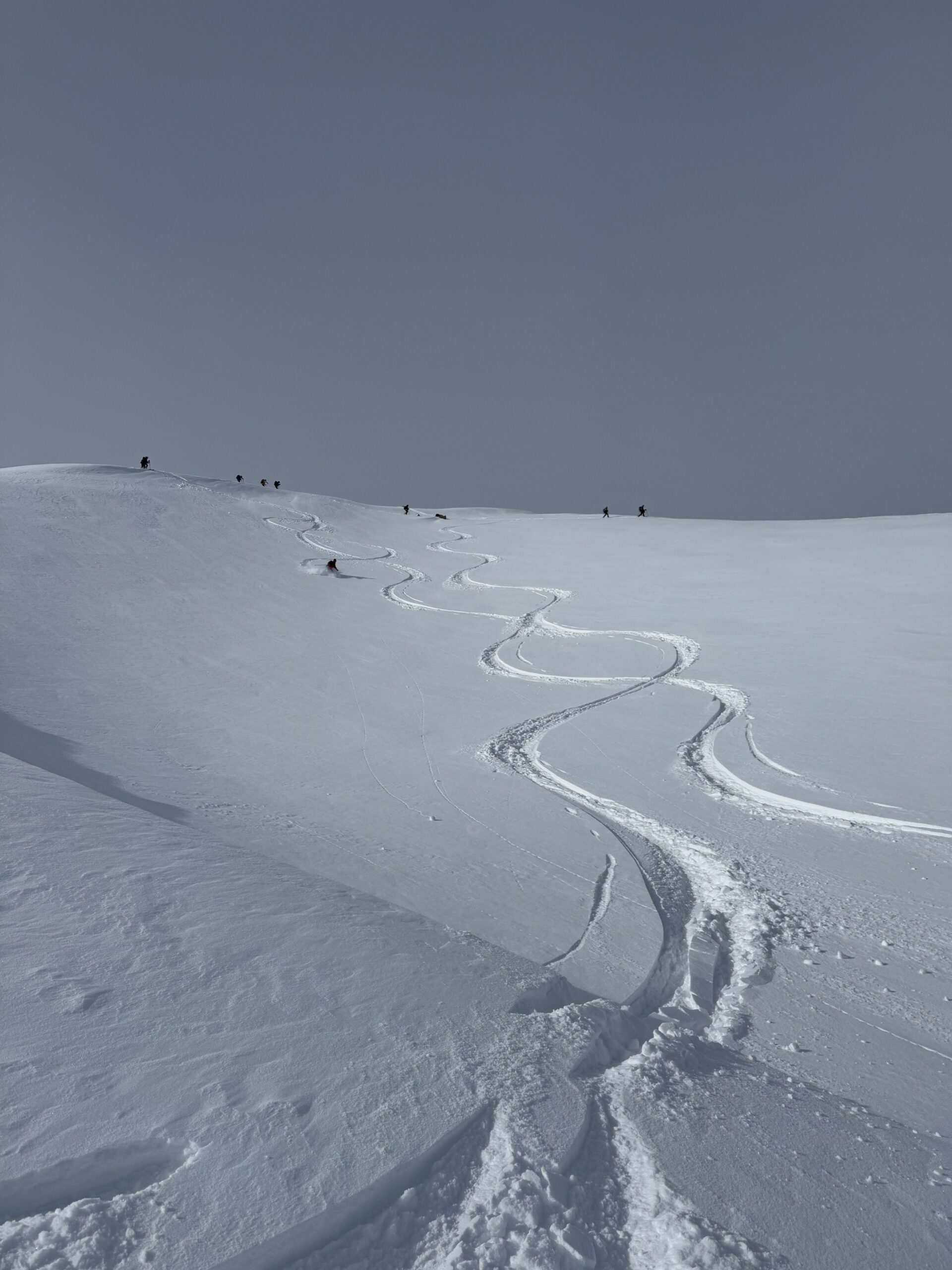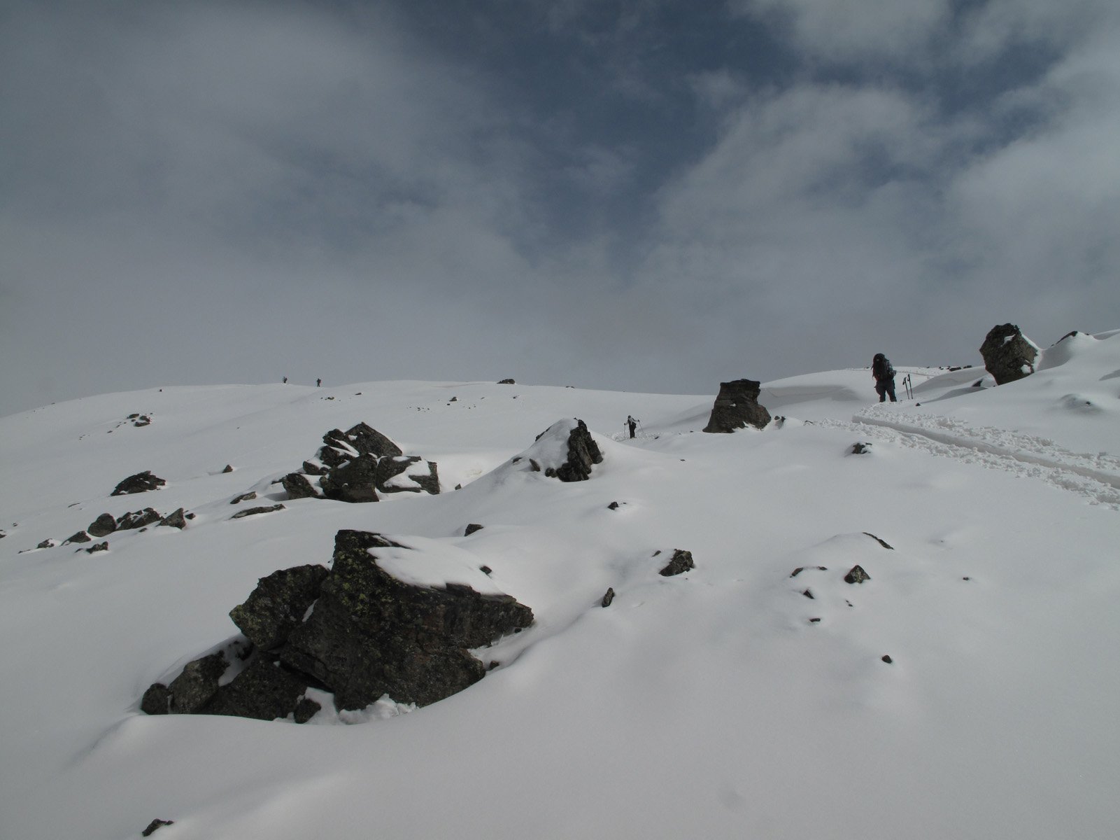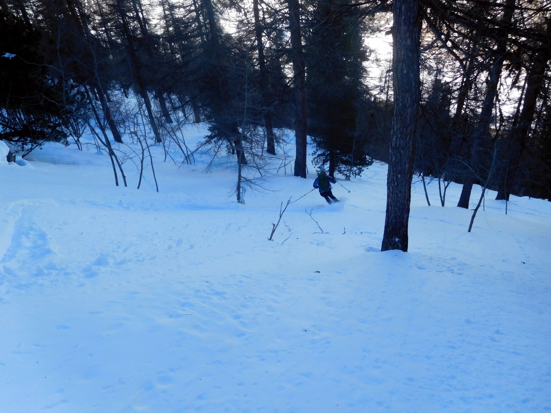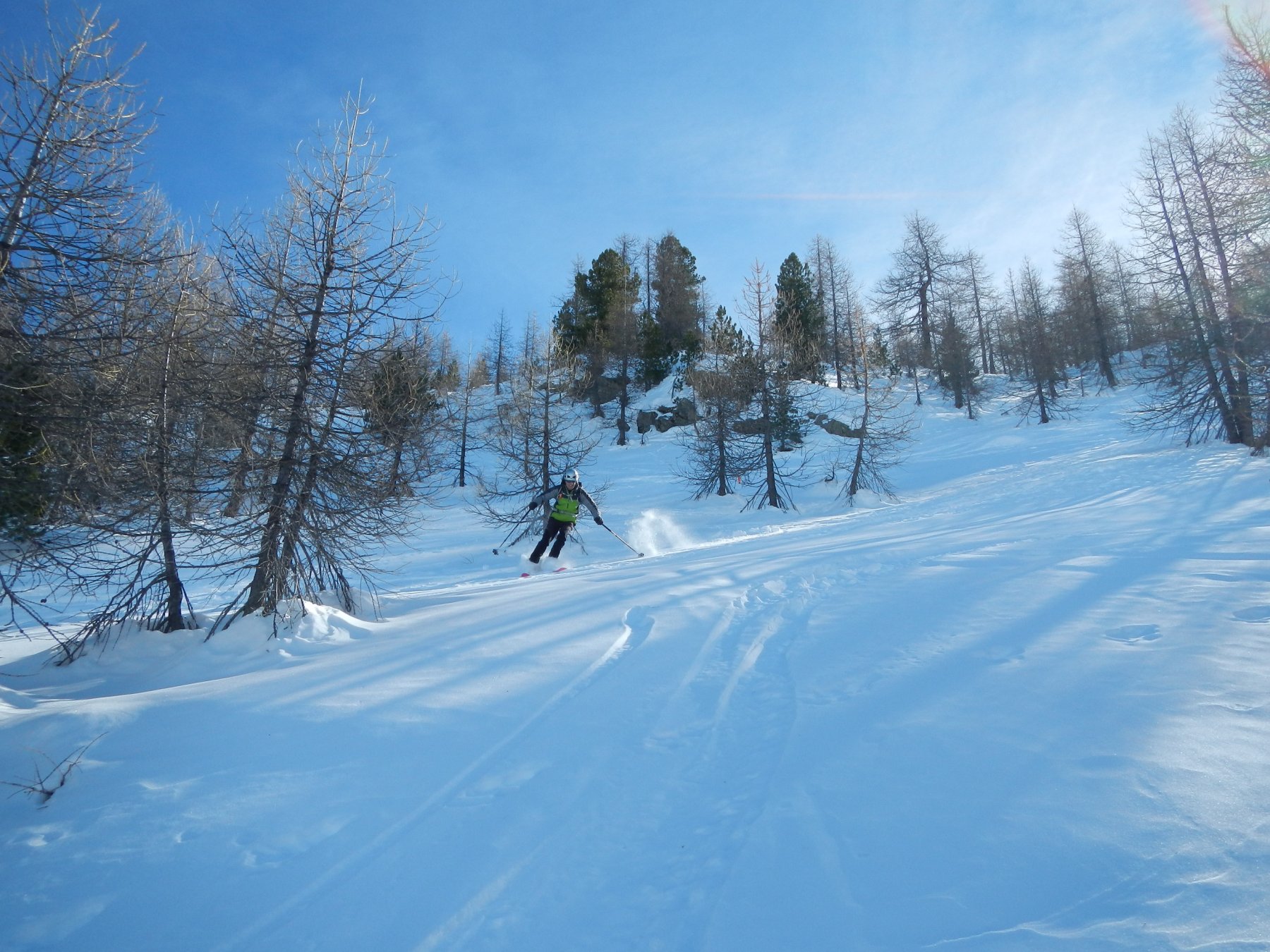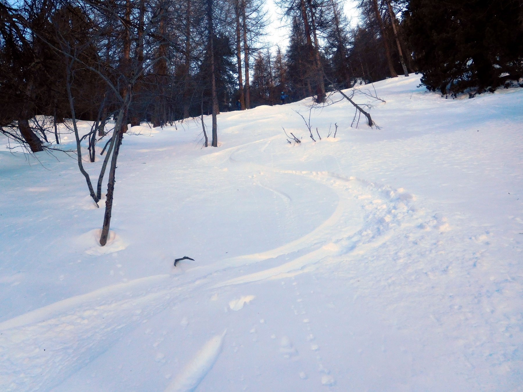 Di qui si prosegue nell’0monimo vallone per deviare poi a sx in direzione di un evidente colle, per ampi pebdii in moderata pendenza. Dal Colle si prosegue per cresta con gli sci fino alla cima, se l’innevamento lo consente.