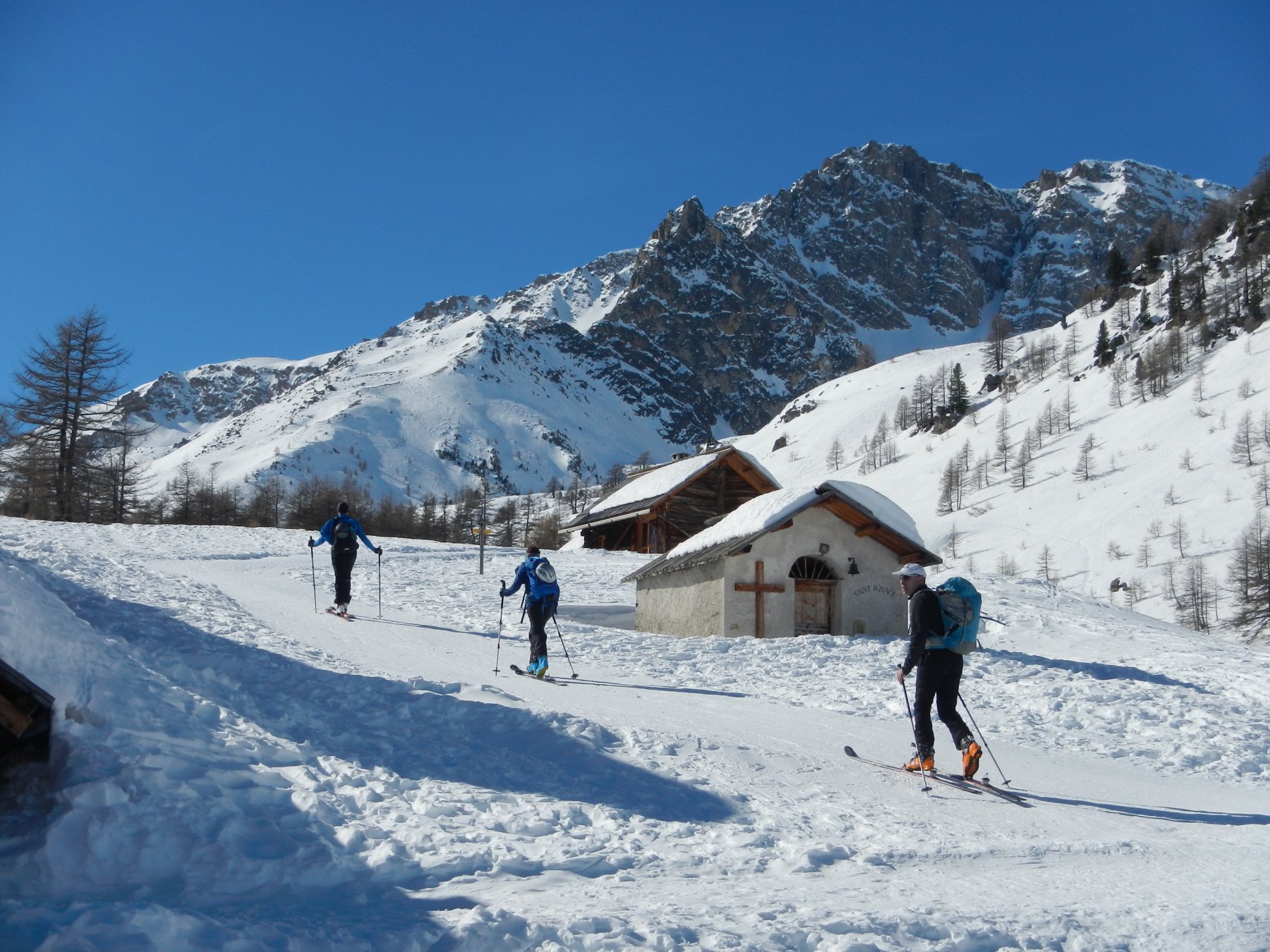 Da Nevache si segue la strada battuta da fondo fino alle Cappelle, di qui si devia a sx in leggera discesa a varcare il Pont du Rately, seguendo poi l’itinerario (tracciato) per il Ref. de Buffere.