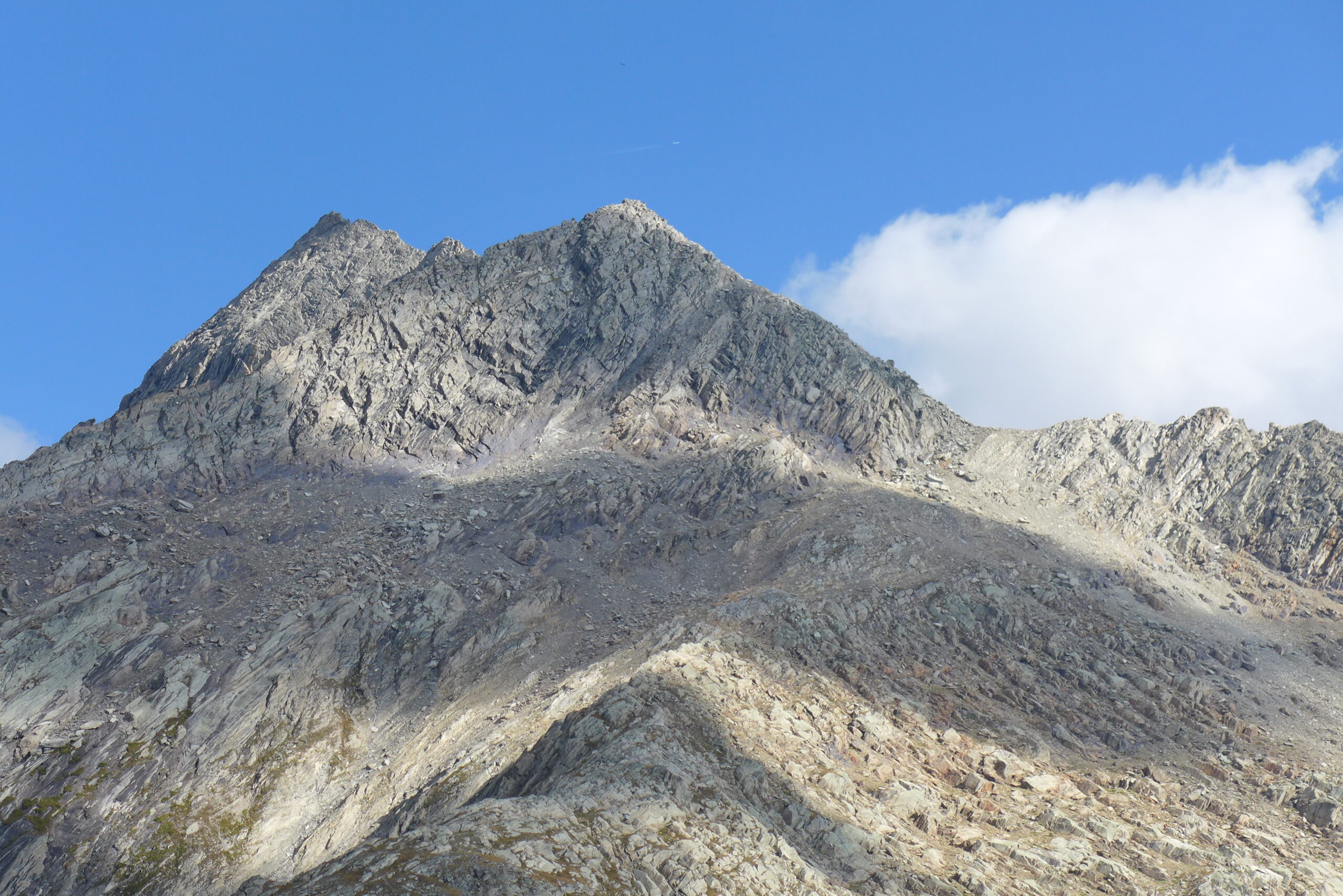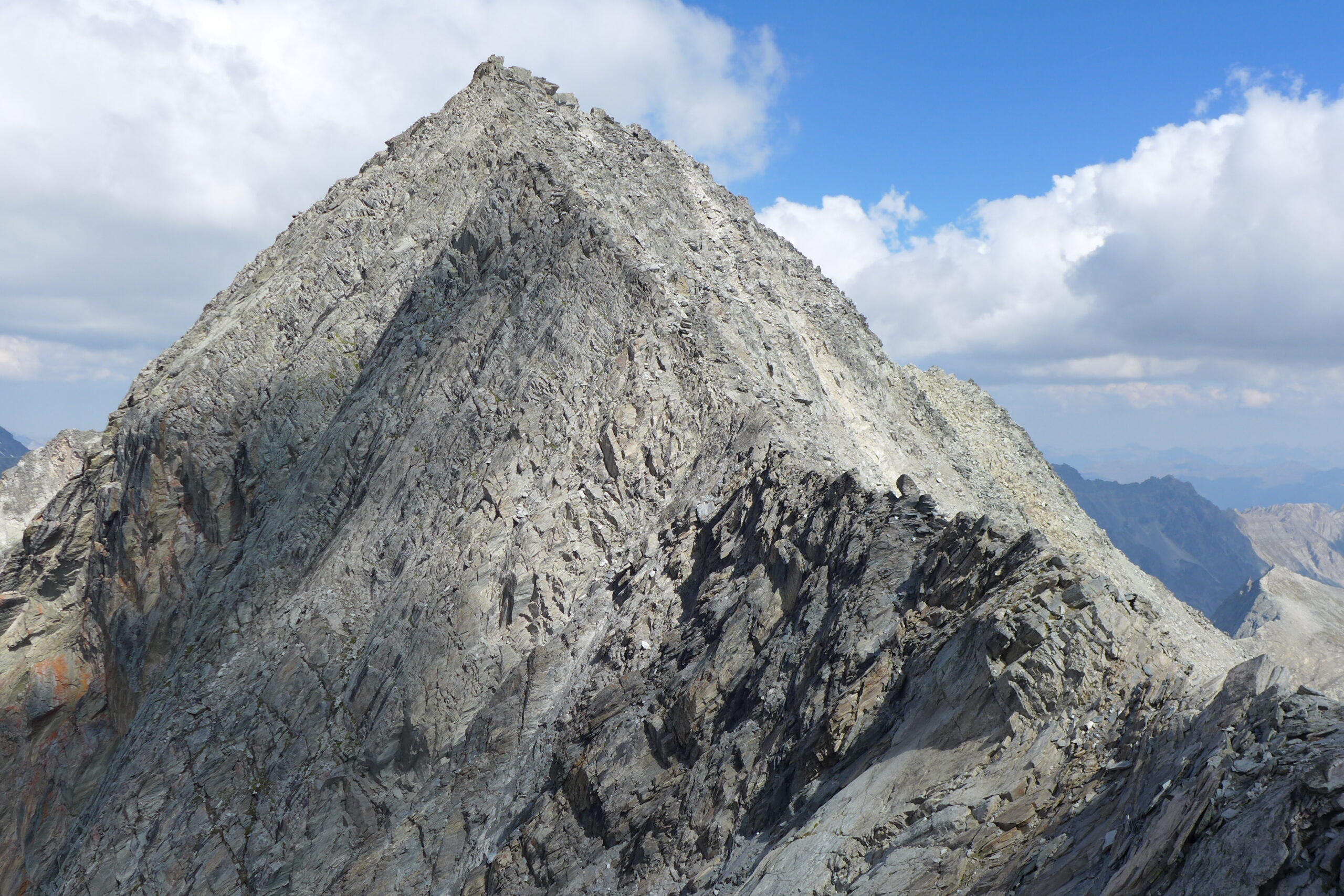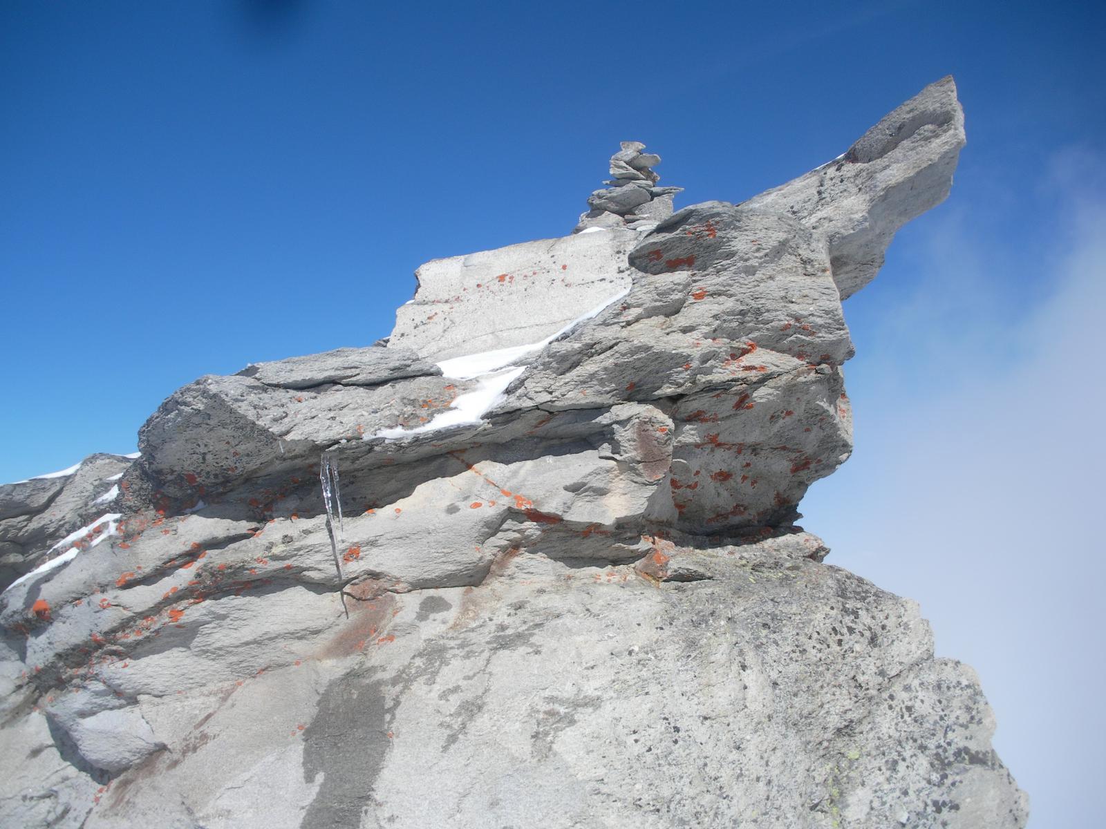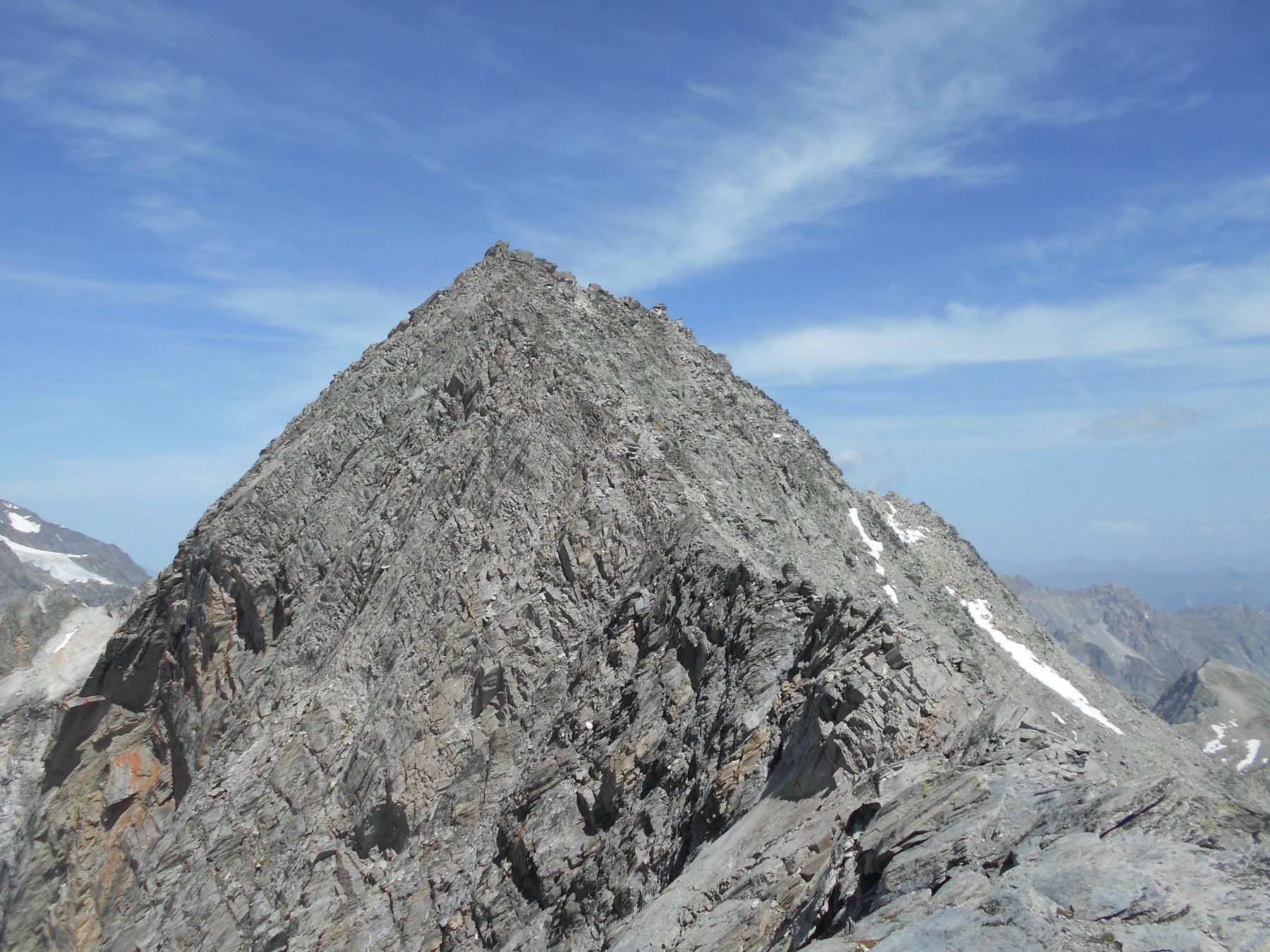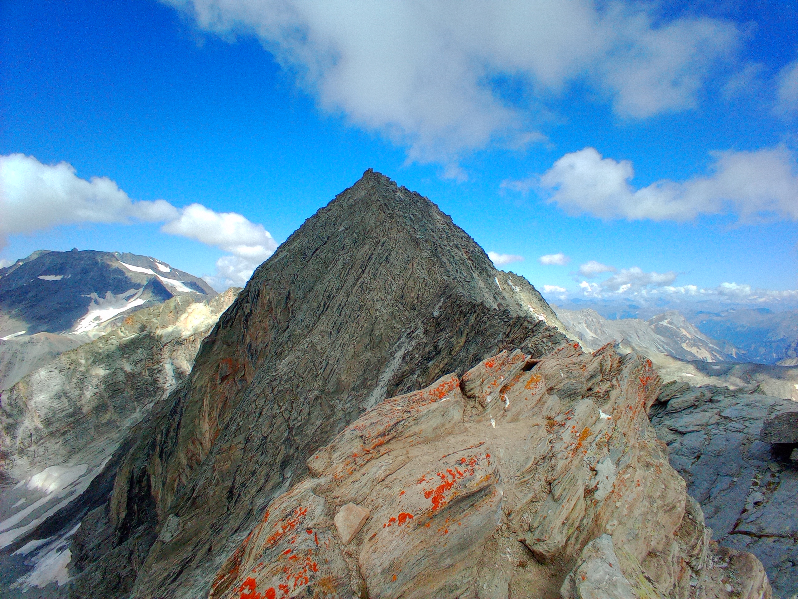 In prossimità del colle si stacca sulla destra una traccia (ometti) che risale una morena che va ad esaurirsi al colletto posto a destra del Grand Roc. Si risale sulla sinistra per tracce e massi la cresta e si raggiunge la cima del Grand Roc (3316 mt.).