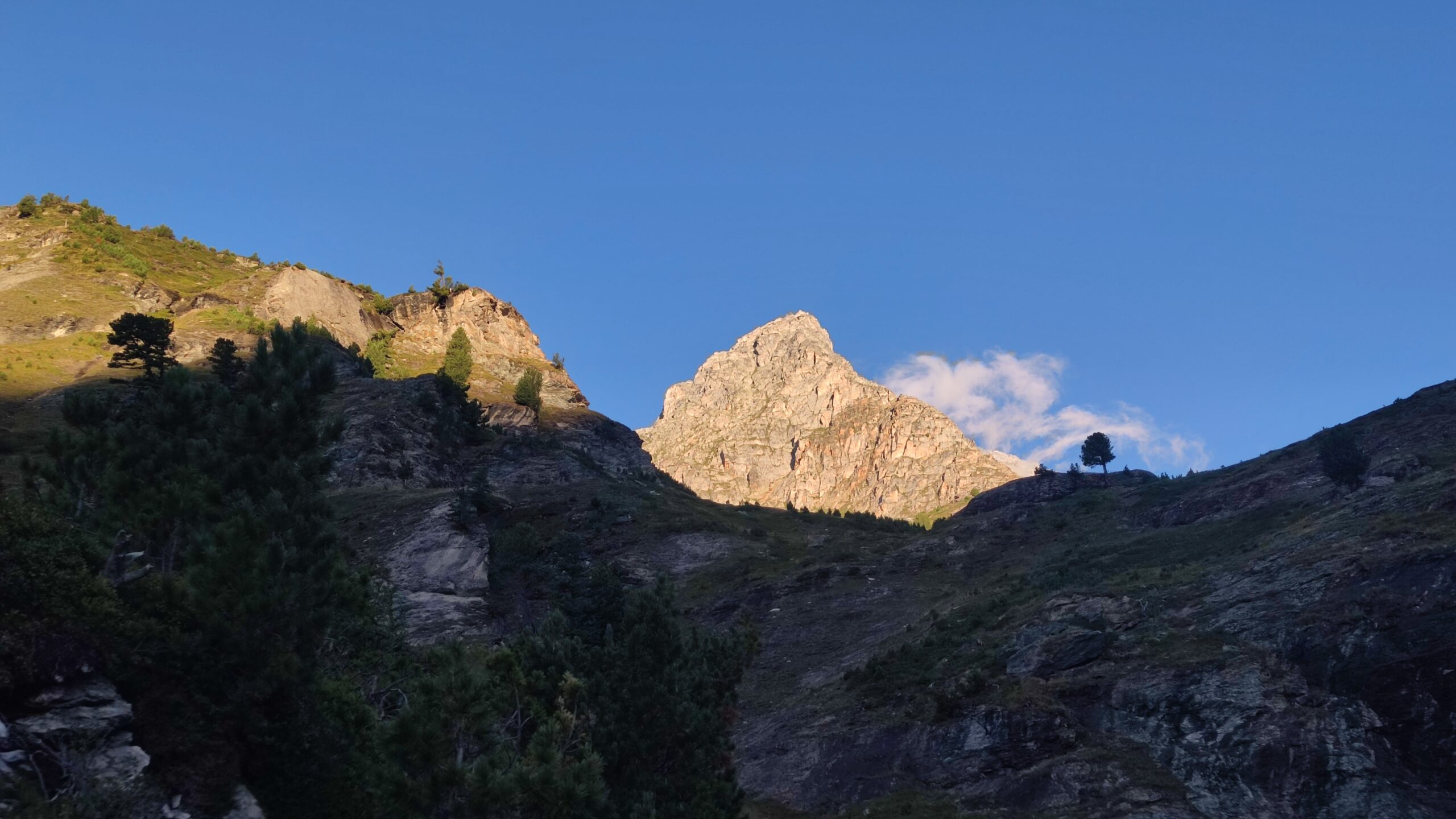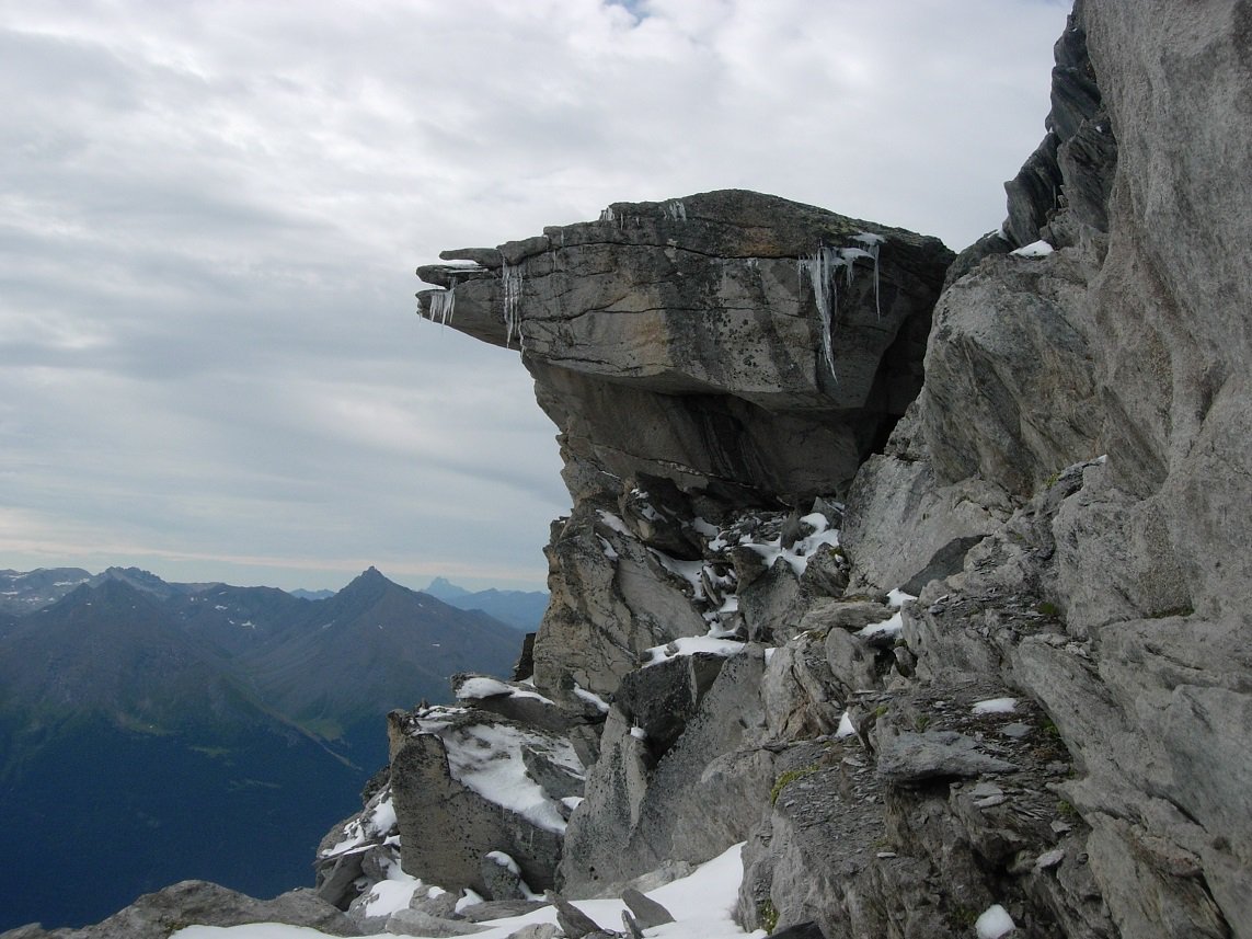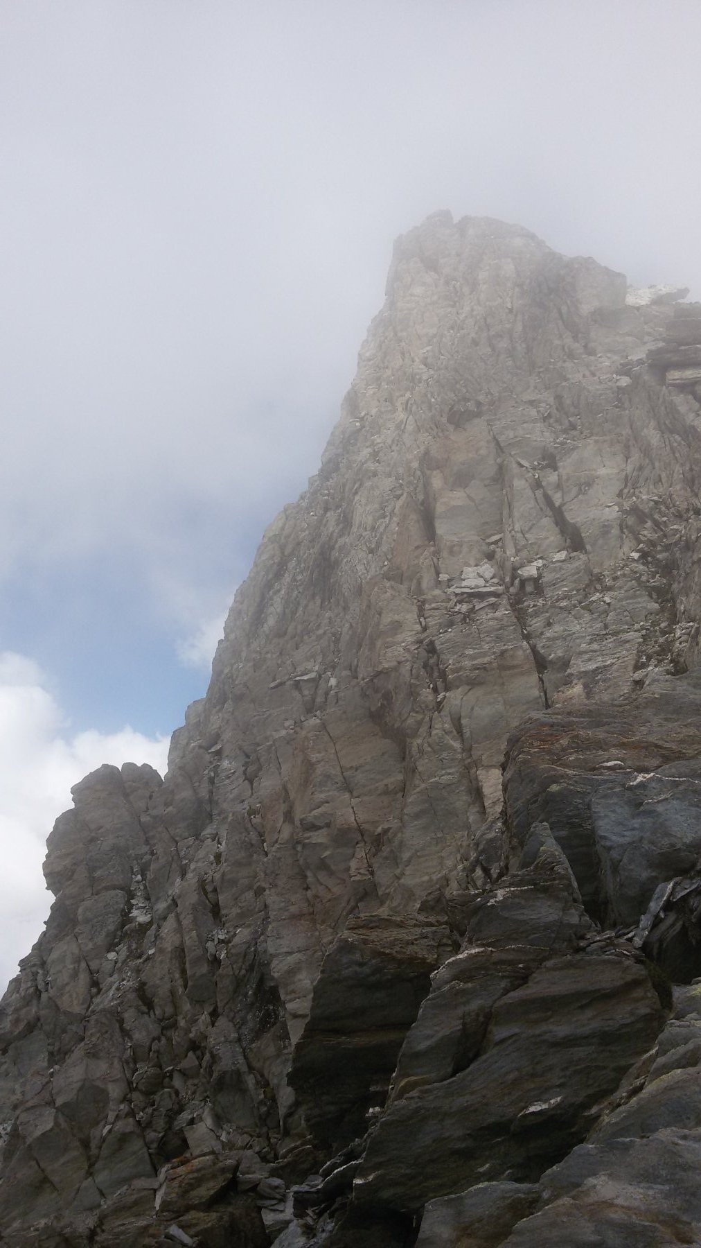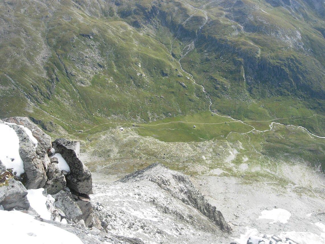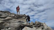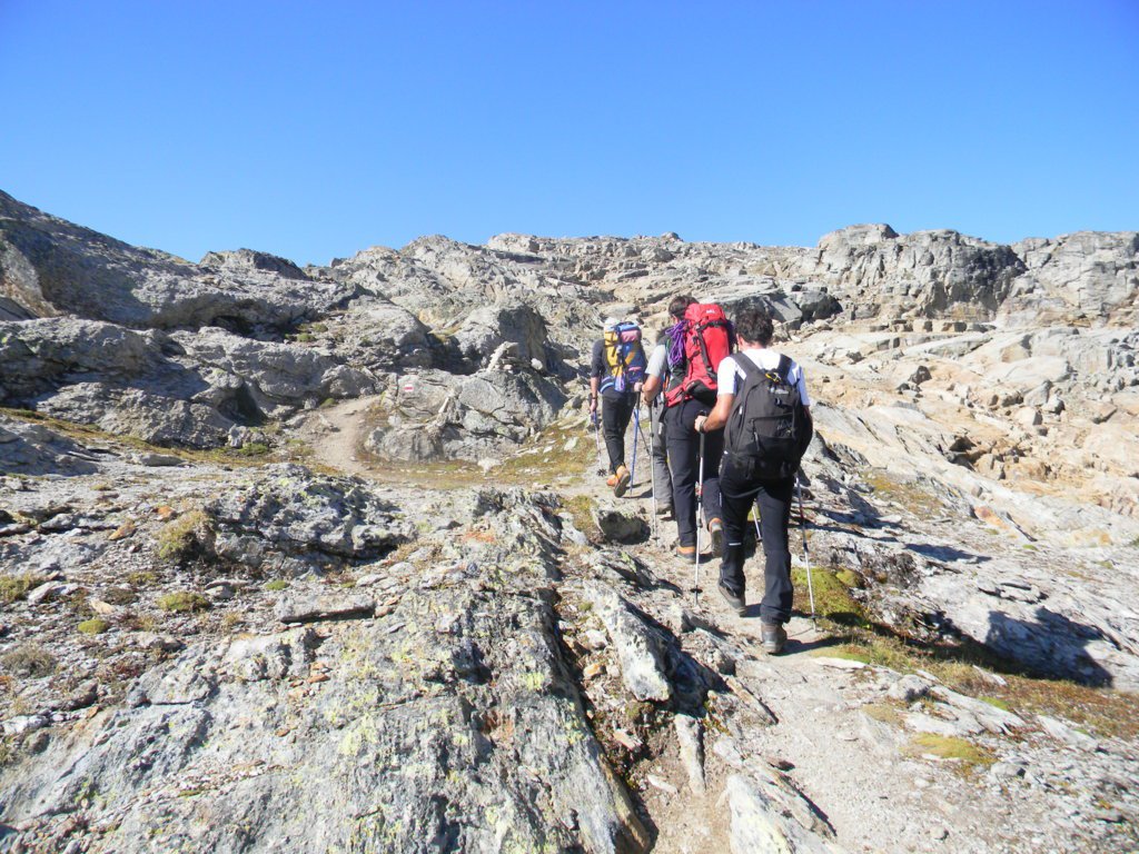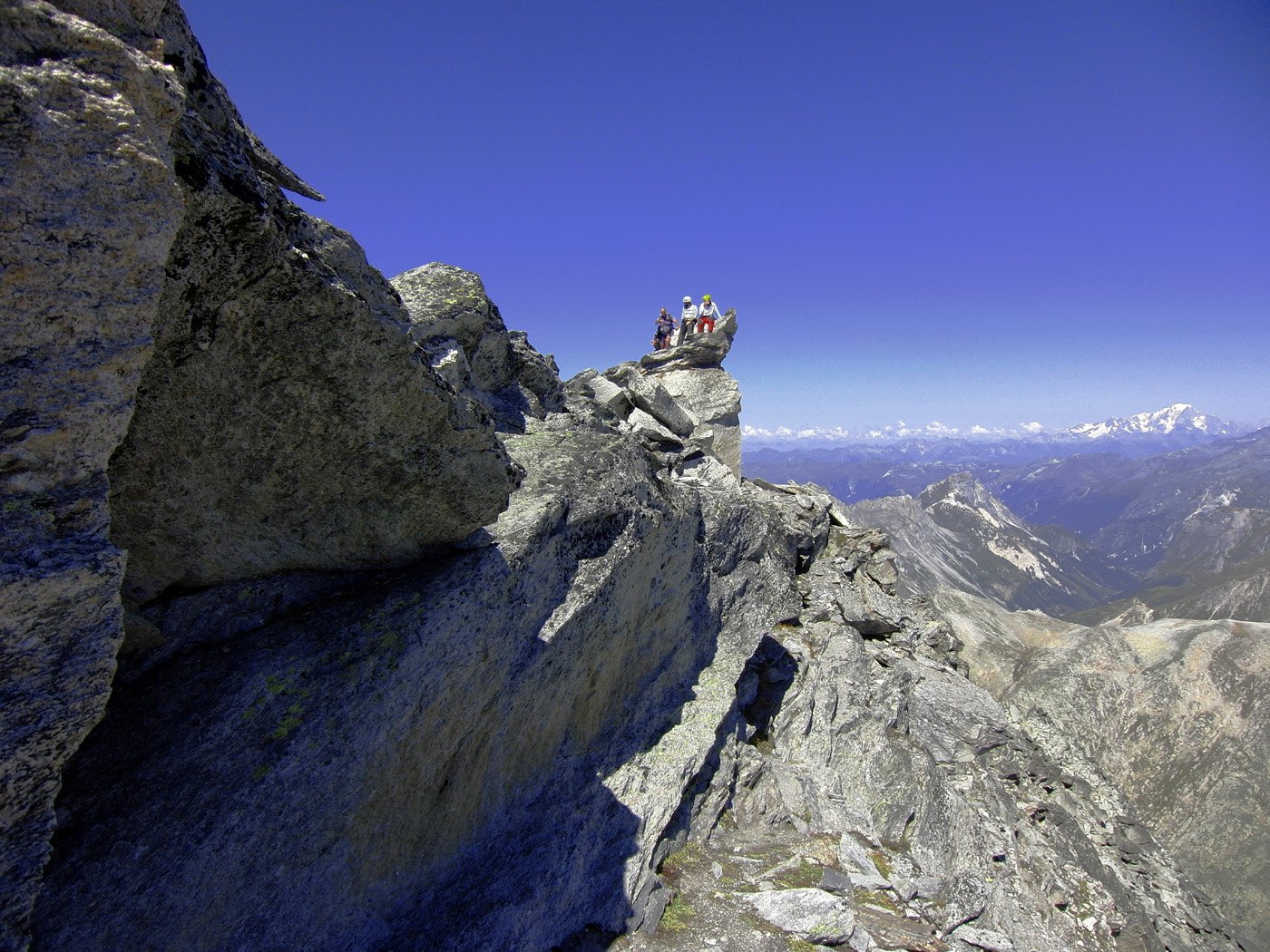In prossimità del colle si stacca sulla destra una traccia (ometti) che risale una morena che va ad esaurirsi al colletto posto a destra del Grand Roc. Si risale sulla sinistra per tracce e massi la cresta e si raggiunge la cima del Grand Roc (3316 mt.).