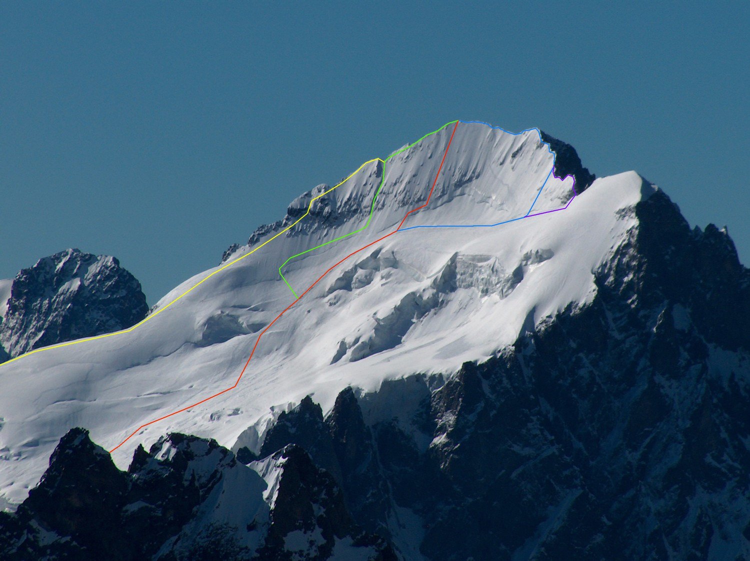 Come per la via normale fino al plateau glaciale sottostante la parete nord.