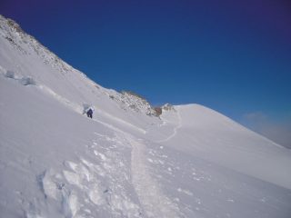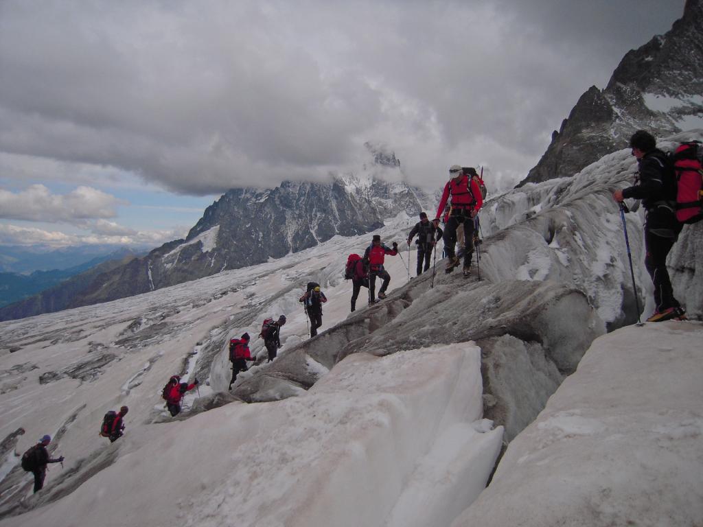 Ghiacciao senza alcuna insidia apparente, condizioni perfette della montagna…