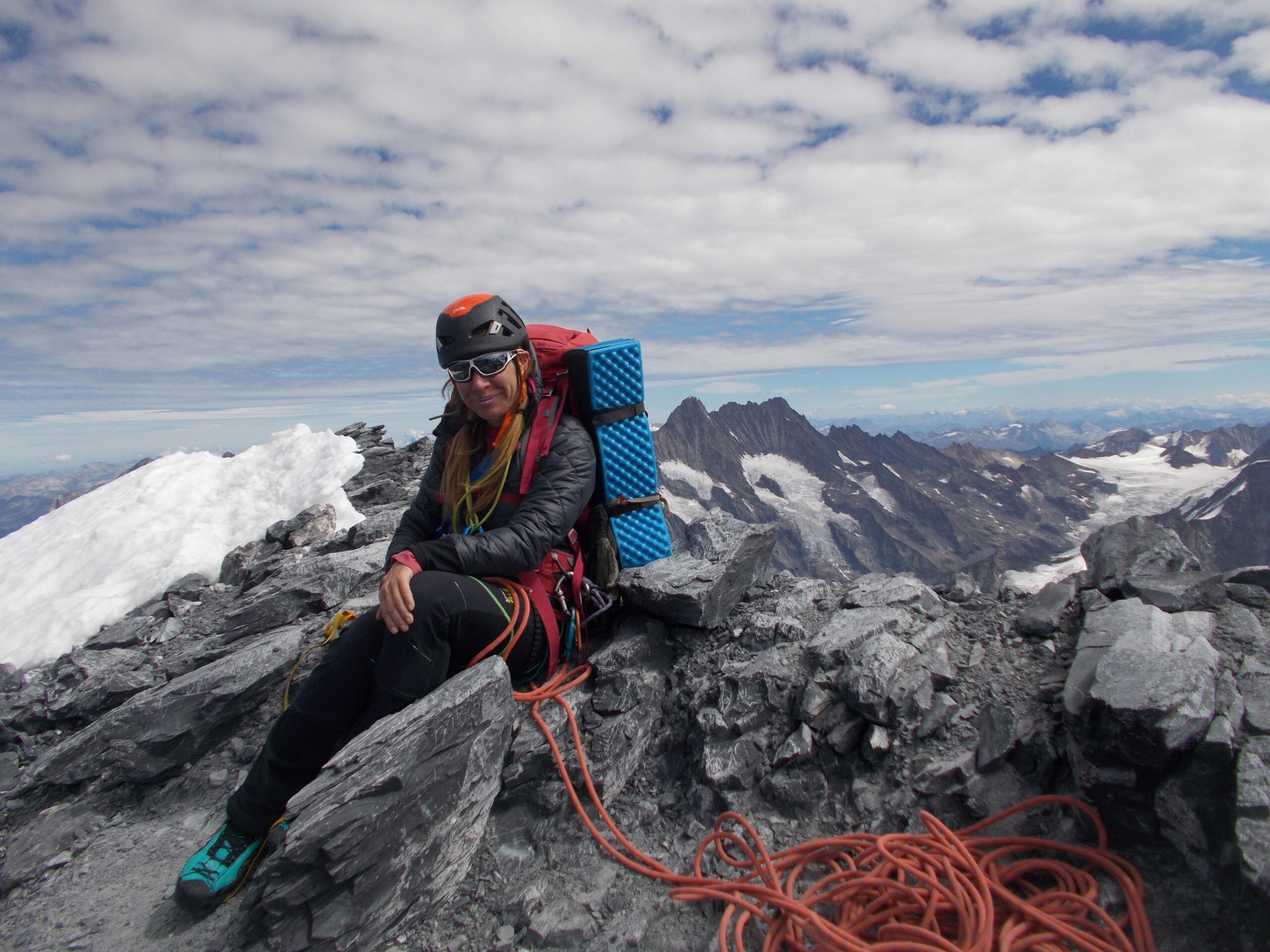 Cresta gia’ invasa di frontali accese, una via crucis alle 6,30 ora che abbiamo attaccato. In cima dopo tanto arrampicare e canaponi in gran massa da tirare, l’impressione che dava.. quella come di una salita senza fine.