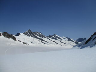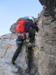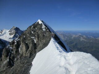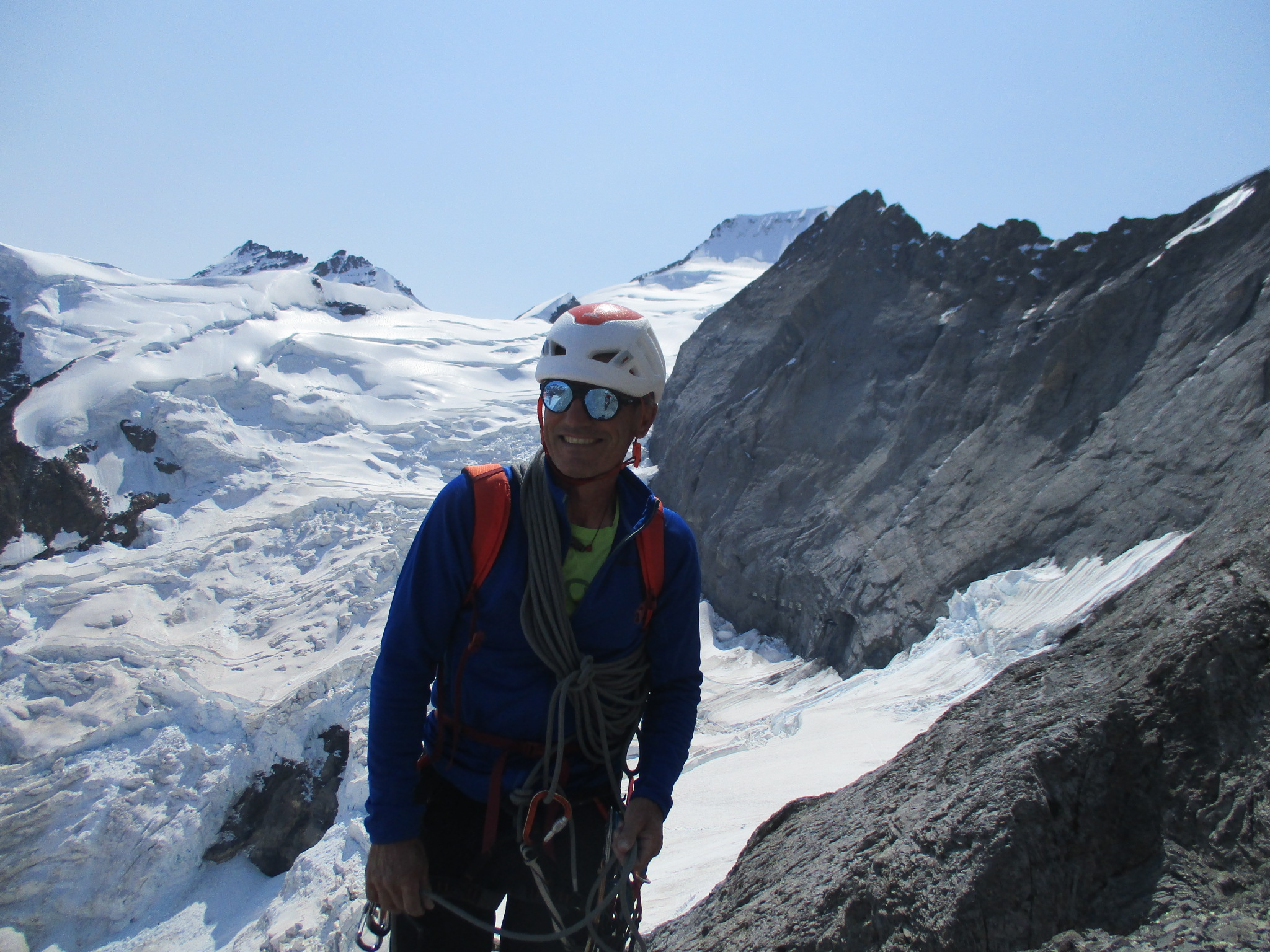 Cresta attualmente in ottime condizioni….ottimo sistema di prenotazione online del rifugio che permette di verificare la disponibilità’ e modificare in tempo reale; avvicinamento al rifugio: dopo i tre tiri su roccia, presenti alcuni spit, non e’ subito evidente, una freccia rossa indica la dx ma vi porterà’ su terreno infido…meglio salire ancora dritti sul facile e poi traversare verso dx. Lungo la Mittelegi i canaponi sono presenti solo nei tratti più’ impegnativi, intervallati da diverse sezioni dove bisogna arrampicare, presenti spit o anelli dove necessario. Discesa lunga, un ultimo torrione presenta un tiro con un passo di quarto esposto ma ben ammanigliato; infine discesa lungo il ghiacciaio fino alla stazione del trenino.