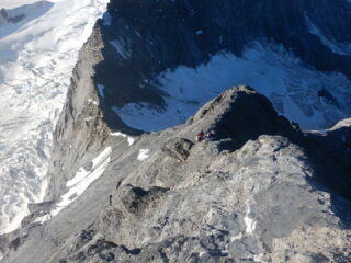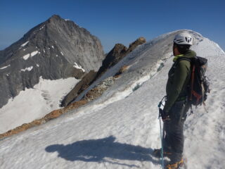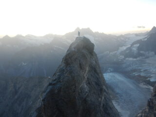 Ottime condizioni della cresta, tutta secca, giornata con meteo stabile e accoglienza al rifugio impeccabile. Tempistiche: 3h dal rifugio alla vetta e 4h dalla vetta al rifugio Monchsjoch. L’accesso alla Mittellegi hutte dalla stazione Eismeer ha un punto pericoloso a causa di un seracco instabile sopra la traccia.