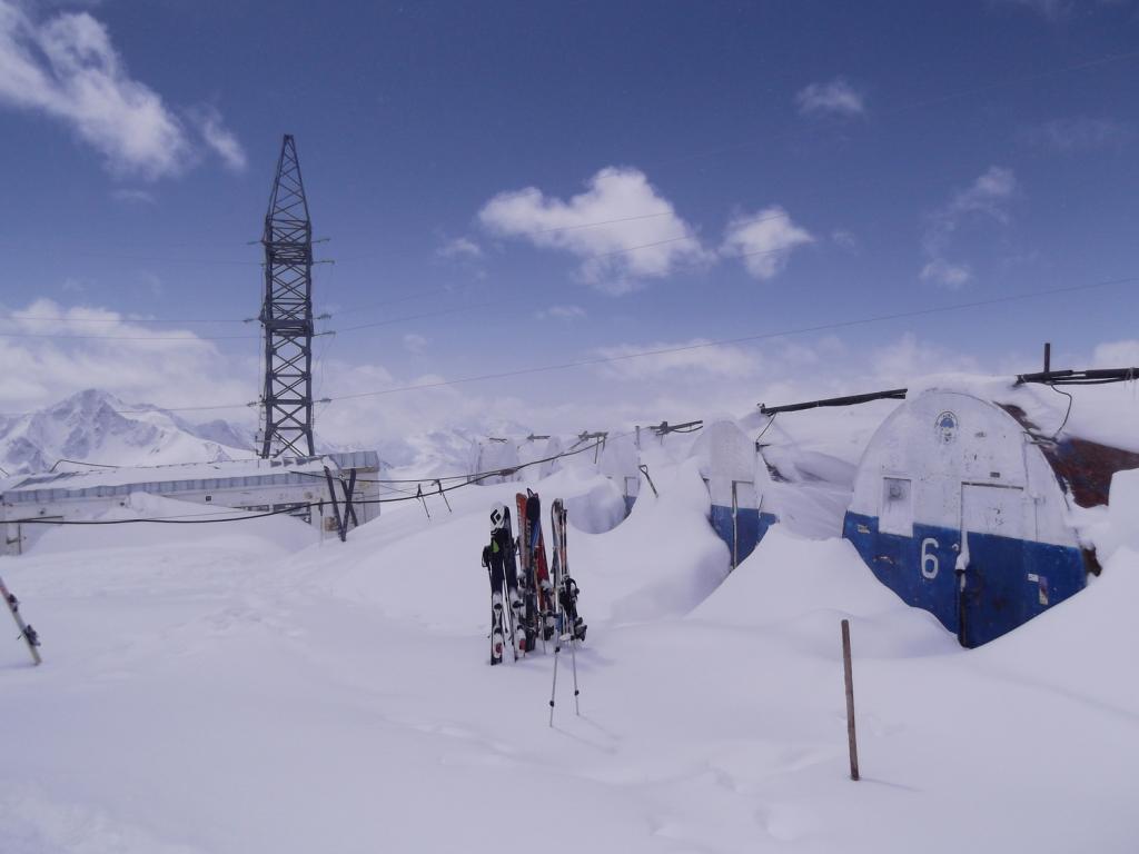 Meno favorevoli le condizioni della neve da quota 4800 in su, con tanto ghiaccio coperto da pochi centimetri di neve,abbiamo portato gli sci su, ma alla fine siamo scesi a piedi per non rischiare considerando anche la stanchezza accumulata.Bella sciata più sotto fino ad Azau village.
