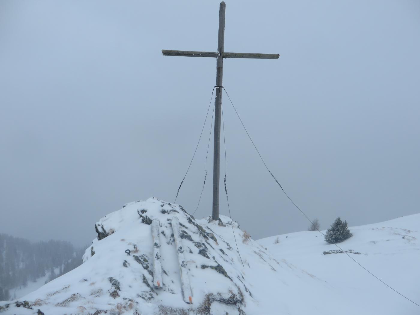 Gitarella veloce prima della partenza per il ritorno. Nevicata in corso ma visibilità tutto sommato accettabile. Fermo 100mt sotto la cima non praticabile per mancanza neve spazzata dal vento. Tutto sommato anche belle curve nei primi 200mt.