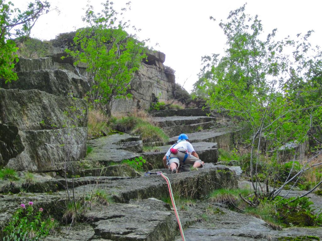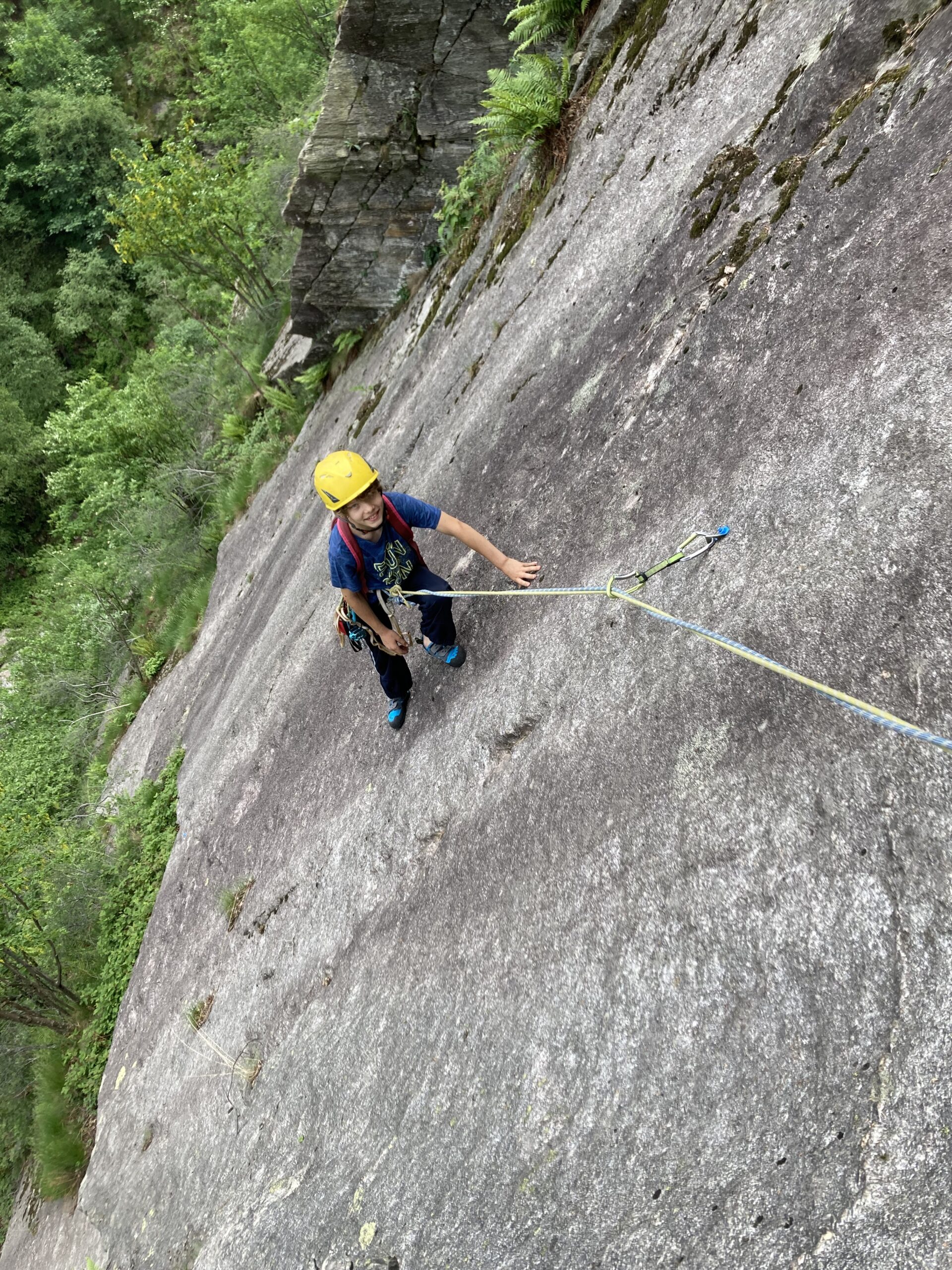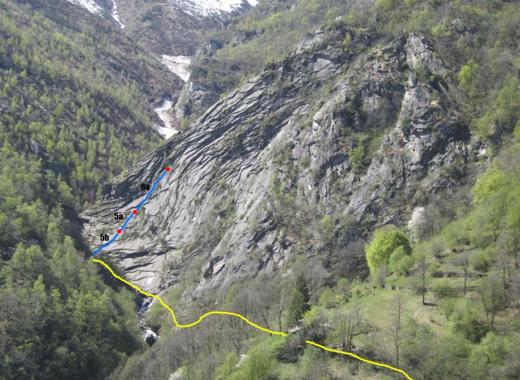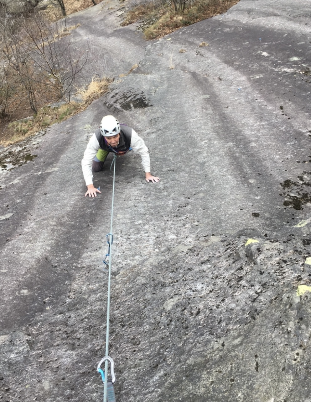 L1)diedrino iniziale,placche intervallate da un risalto. 45 mt. 5b
