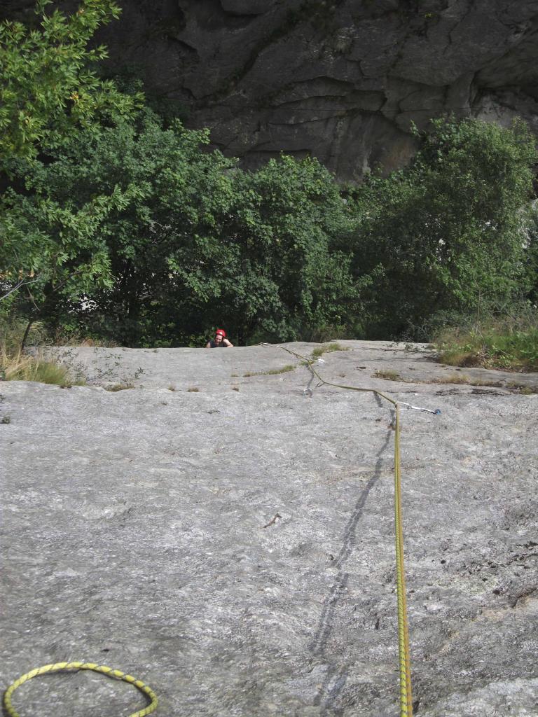 L2)placca appoggiata interrotta da un tetto più impressionante che difficile. 20 mt. 5a