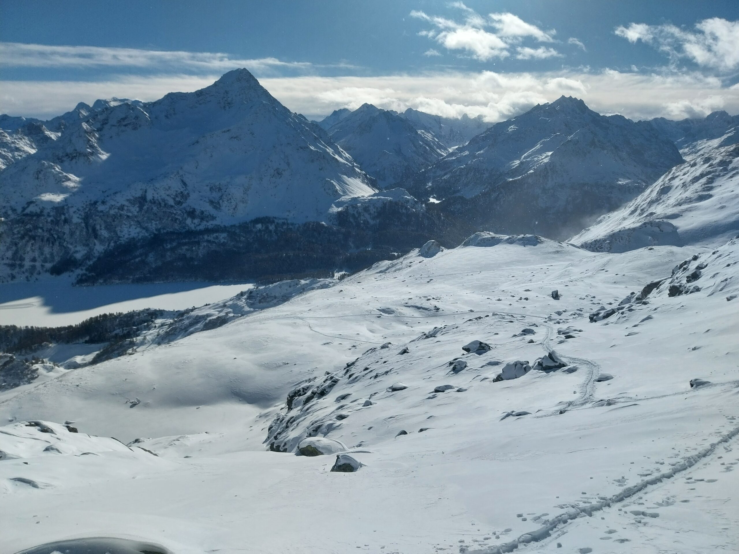 Dalla Fourcla Grevasalvas con neve sicura si può scendere verso N sulla strada dello Julierpass a La Veduta (2233 m)