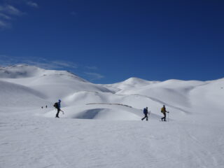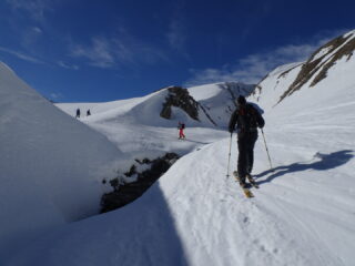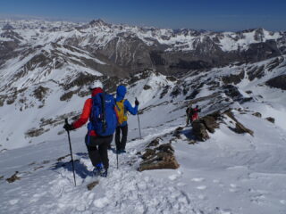 Si calzano gli sci quasi subito poi almeno 3 brevi interruzioni. Oggi nella gorgia indispensabili i rampant. Molti scialpinisti sul percorso. Gita in ambiente spettacolare. Peccato solo per il vento forte sulla cresta finale ma in vetta si stava benone. In 4 sono scesi sul versante Francese fino al lago ripellato fino alla sella e fatto una discesa da 5 stelle. In 3 siamo scedi dal versante di salita su bella neve trasformata fino all’imbocvo della Gorgia da 4 stelle. Poi sopravvivenza. Si arriva a 10 minuti dall’auto. Al mattino piacevole incontro con il Lupo.