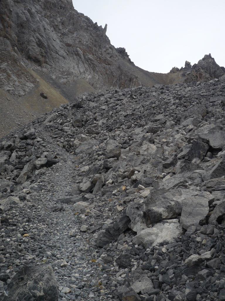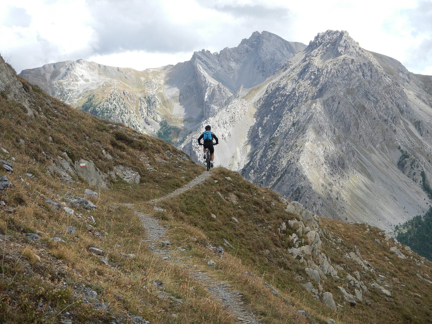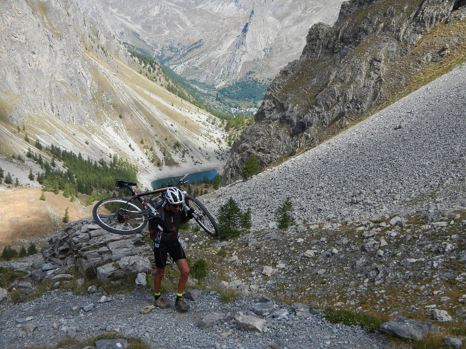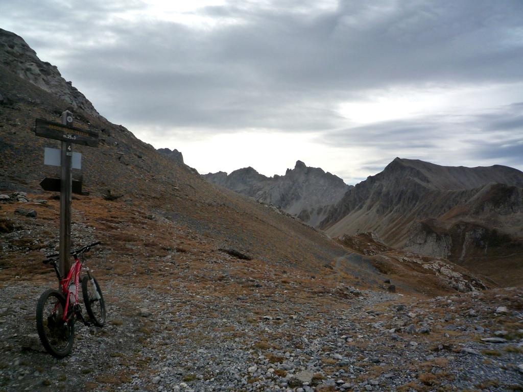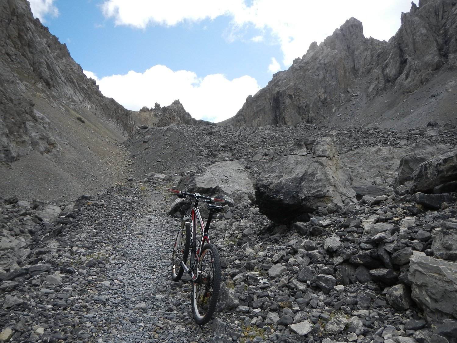 In vista del Bivacco si prende il sentiero che va a sinistra, sempre pedalabile su traversone che passa sopra il lago Apsoi e si continua in sella fin che si può sù per il canalone dell’Enchiausa.