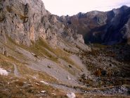 Si butta a spalle la mtb e si salgono i tornantini che portano sull’altipiano dinuovo tranquillo che porta al bivacco Bonelli (2330) in sella.