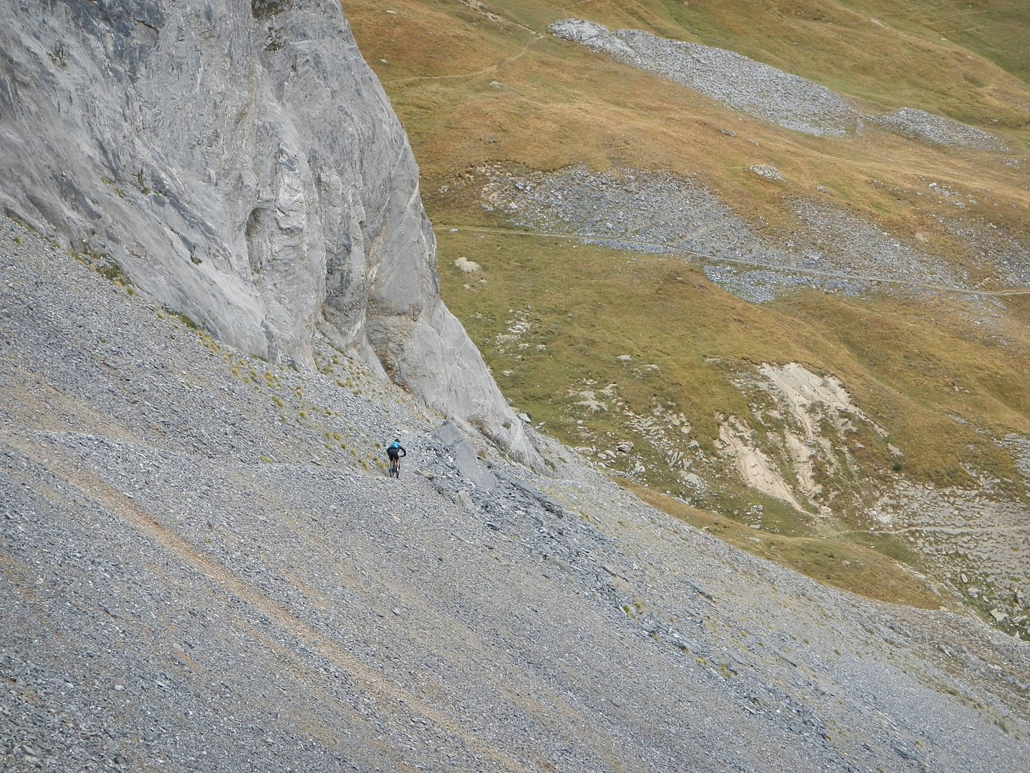 Da lassù, dopo aver cercato quel che volete dentro e fuori di voi, dopo esservi detti delle cose altissime o profondissime e magari dopo esservi dati uno sguardo intorno, mettetevi le ginocchiere e buttatevi giù di là, tagliando i primi due tornanti nella ghiaia puntando i tacchi, ma subito dopo salirete in sella e vi farete una bella cavalcata fin sotto, se volete senza mai scendere e spero non senza fermarvi qualche volta.