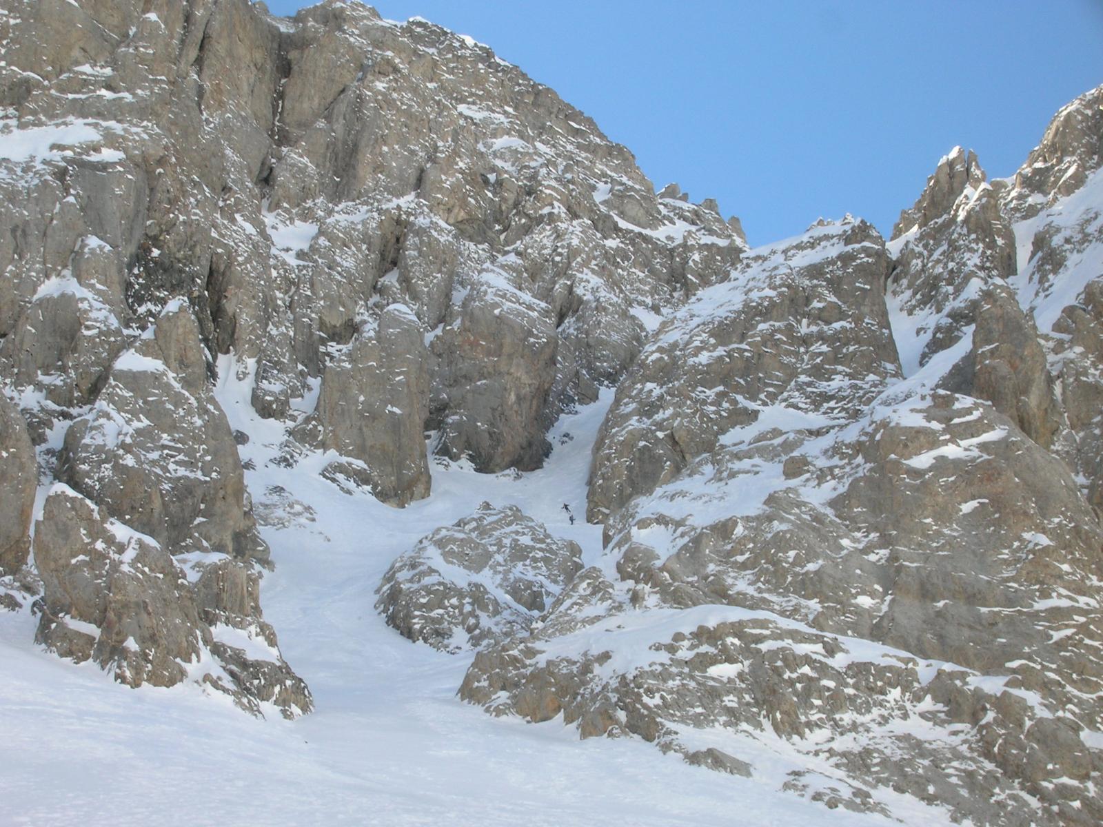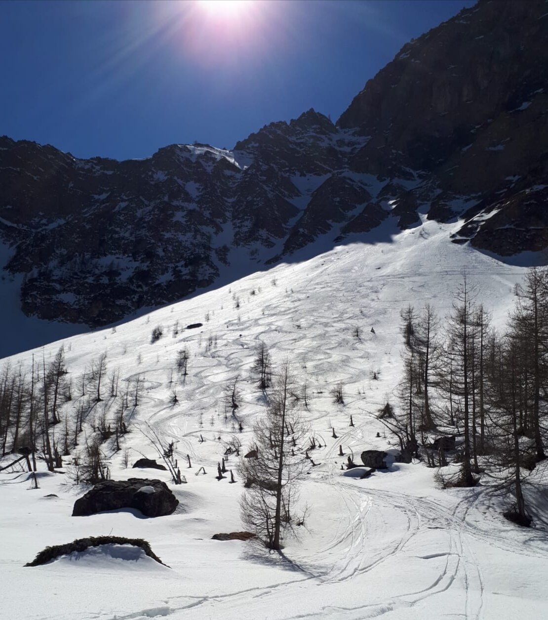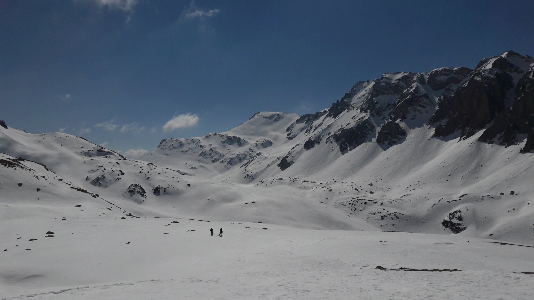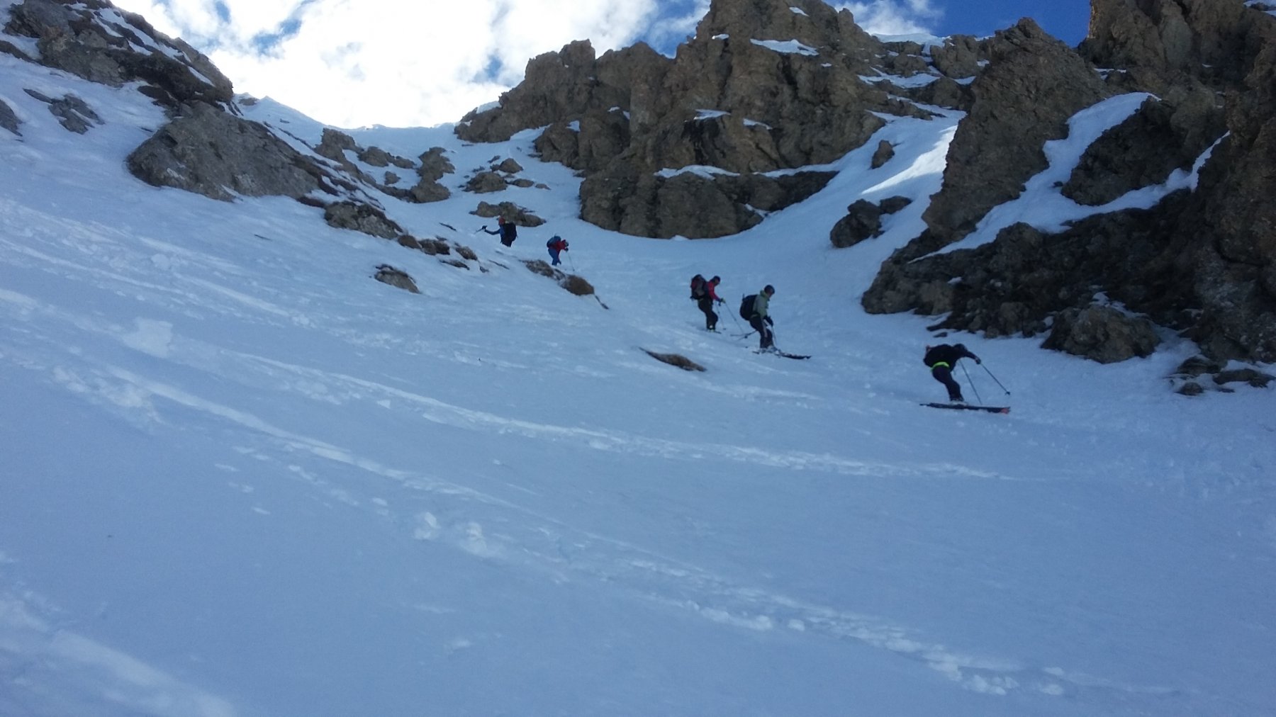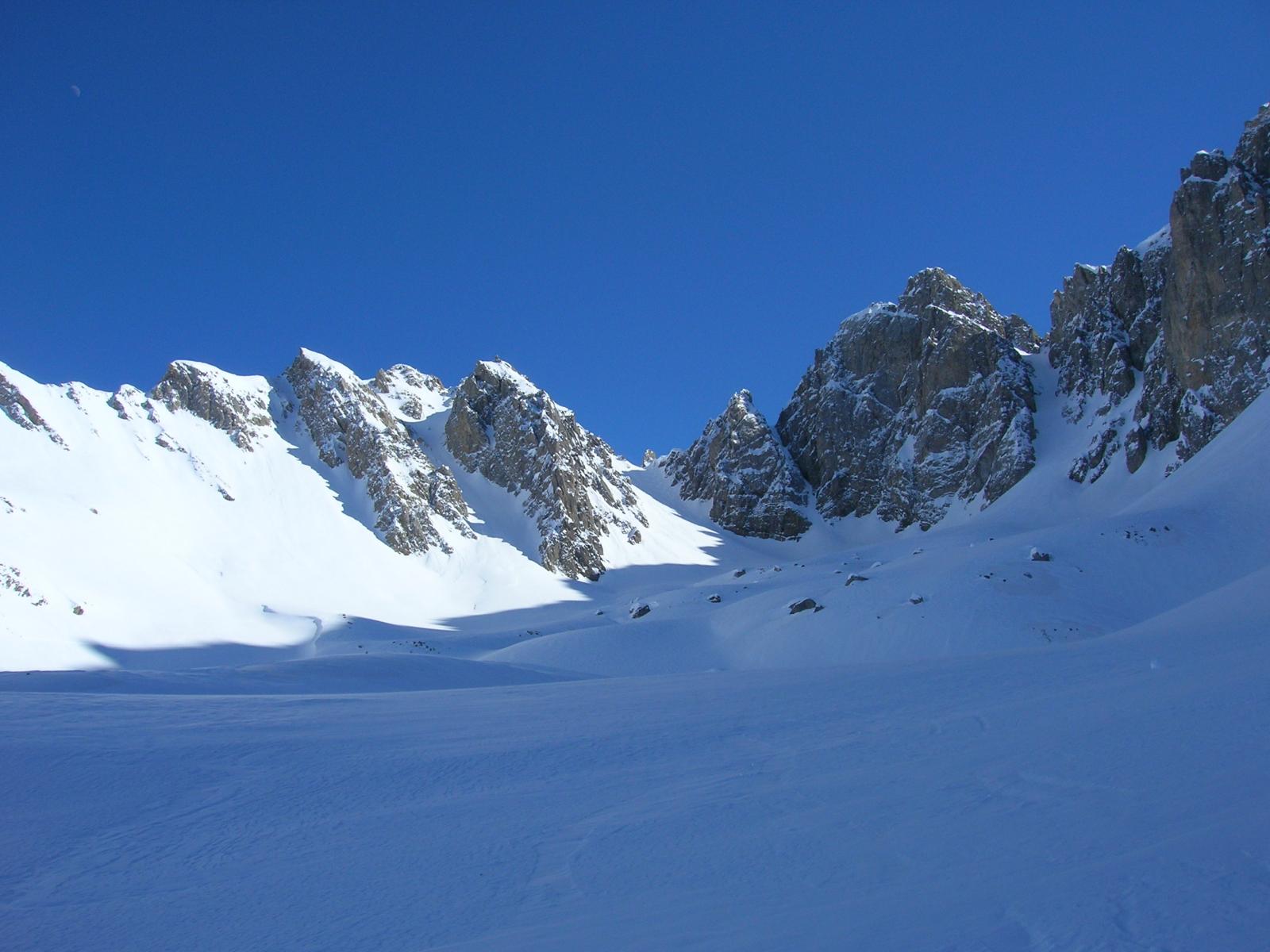 Una volta imboccato il vallone di Unerzio si piega a sinistra e si sale al col de Feuillas 2749 m attraverso il ripido fanalino finale. Si scende quindi sul versante destro lungo il fianco sud dell’Oronaye. Senza perdere troppa quota si attraversano una serie di slavine fino a trovarsi di fronte la conca della cima Le manse. Abbandonare il vallone e risalire il fianco destro fino a portarsi sotto la cornice di neve che introduce al colle di Boeuf. Per superare la cornice utili piccozza e ramponi. Quindi si scende verso il bivacco Bonelli ma prima di raggiungerlo si piega a destra nel vallone di Enchiausa che si risale fino all’omonimo colle, attraverso un ripido pendio finale. Da qui si compie la discesa finale lungo lo stesso tragitto della risalita