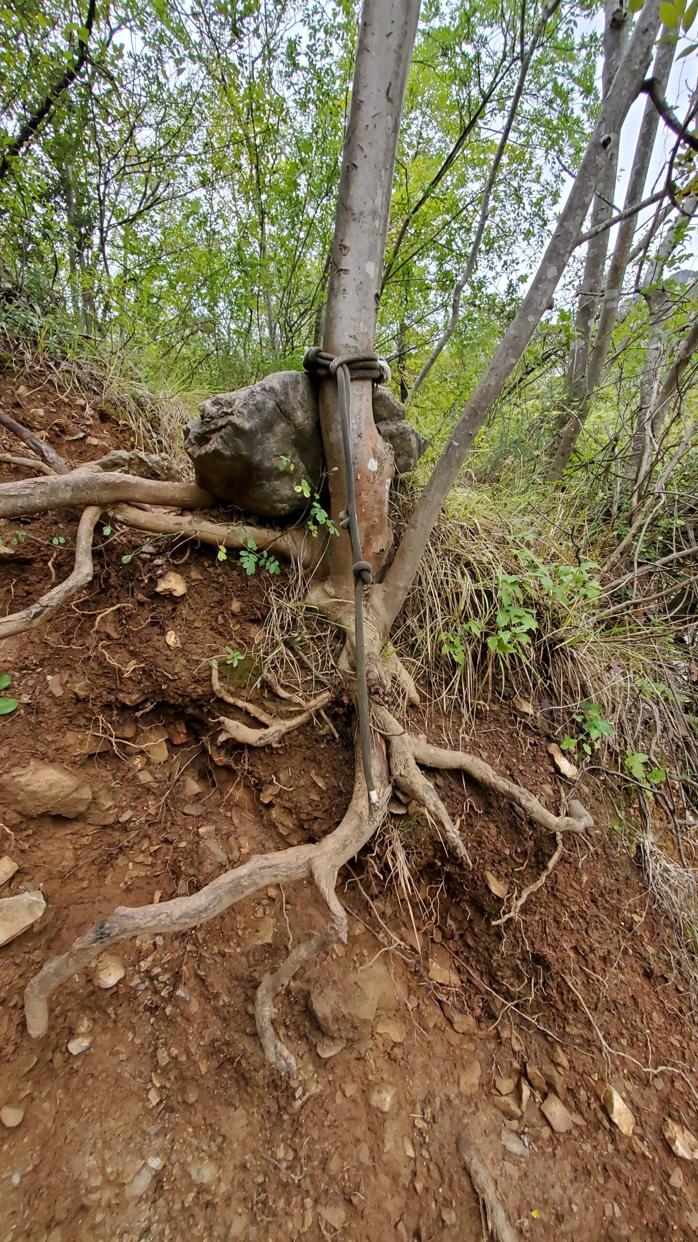 Al momento di attraversare il letto del fiume secco si punta verso 1 albero con cordone nero legato (allego foto).