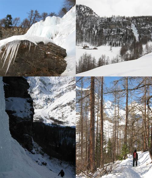Cold temperatures made the ice in the beginning very breakable and you can climb up via differrent ways to make it more interesting. (more or less vertical).
