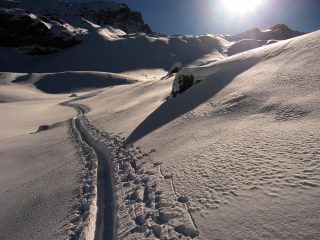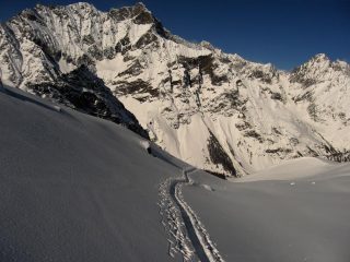 Partito da solo da Rhemes alle 9.15, arrivato in cima alle 13.30. Molto freddo e ventoso in cima. Comunque discesa da urlo nella polvere, che però spesso nascondeva parecchi sassi. Complimenti ai tizi prima di me per l’ottima traccia.