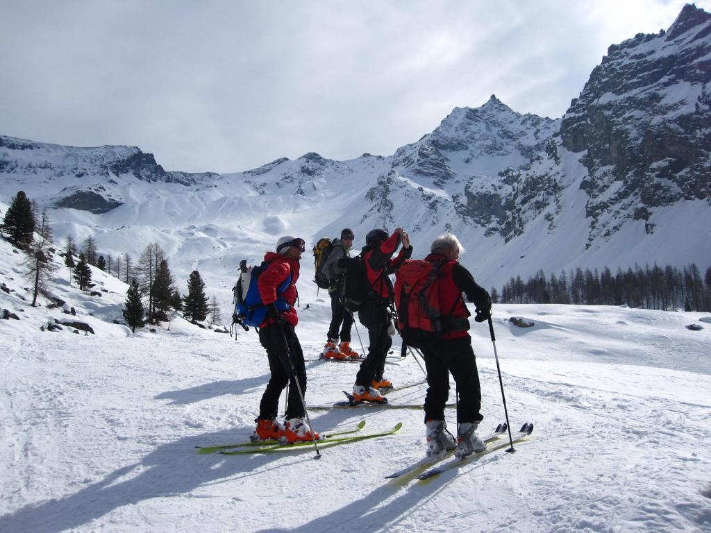 Nonostante la neve complessivamente non facile l’Entrelor con i suoi pendii sterminati non delude mai. Salita con cielo velato senza problemi, poi si è aperto quando abbiamo iniziato la discesa nel vallone di Sort, dove abbiamo trovato tratti di farina con leggera crosta ben sciabile; nella parte mediana destreggiandosi tra i dossi siamo riusciti ad evitare le croste più infide. Nel bosco la neve, per quanto non abbondante, era allentata di quel poco che ci ha permesso una buona sciabilità senza toccare alcuan pietra