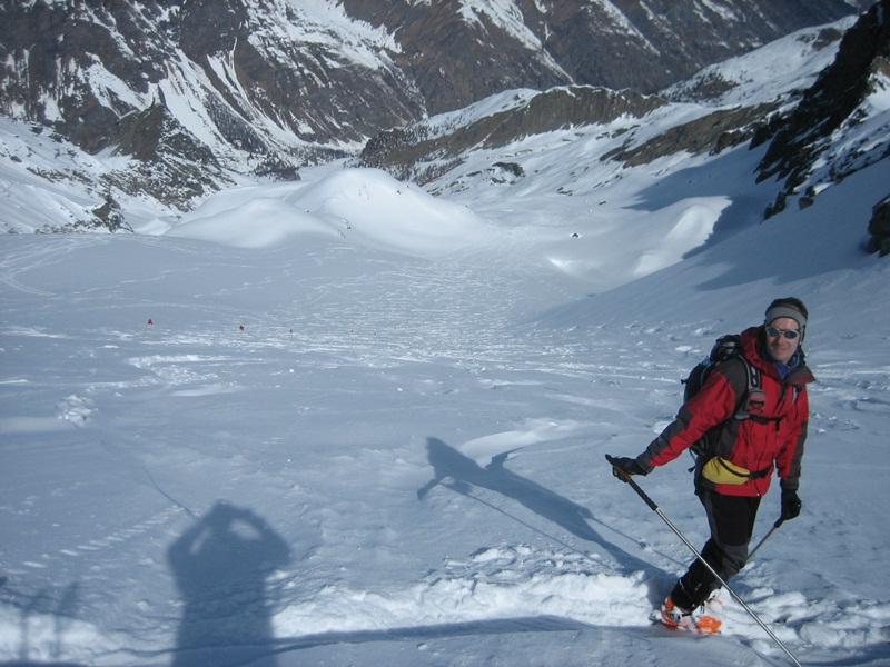 Neve in discesa(dalle 11);inizialmente farinosa(anche se presenti scie vecchie semicoperte)sino alla fine del “catino”dopodiche un pò di crosta cedevole ma morbida,avvicinandosi all’alpeggio dura(crosta portante).
