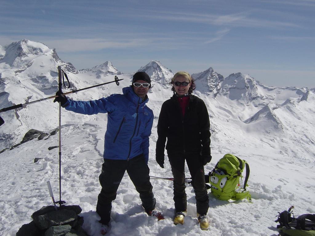 La maggior parte della gente è andata verso il colle, del resto puntare alla cima prevedeva una gran tribolata per la presenza di ghiaccio vivo, ma noi eravamo li per tribolare quindi abbiamo puntato alla “cumbre” vera e propria visto che il ghiaccio era ben visibile e il pendio già tutto lavorato. Ultimo pezzo a piedi senza ramponi. La discesa dico solo che è stata MA-GI-CA!!! Anche se qualche sasso questa bella polvere lo nascondeva.