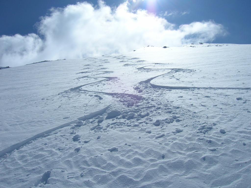 Alle 8 cielo molto coperto con qualche leggero fiocco di neve,poi dopo mezz’ora si è pulito regalandoci uan giornata splendida con sole senza una nuvola ma molto fredda specialmente da dopo il bosco fino alla strettoia.Rigelo assente nel bosco e appena usciti buono fino in punta.Traccia ottima e pochissimi in giro.scesi sul lato dx orografico in quanto poco tracciato.Dalla vetta i primi 500mt. (fino a 2800) polvere da lacrime con ampi spazi vergini,poi fino a 2500 sempre ottima farina con crosticina superficiale ottimamente sciabile.Da qui fino all’alpeggio purtroppo crosta nn portante insciabile da fare attenzione alle ginocchia.Nel bosco un bel e divertente toboga ci ha permesso di scendere senza problemi;fuori da esso neve marcia sfondosa insciabile.Parecchia neve ancora a Rhemes e nella parte alta circa 50-60cm di fresca recente.