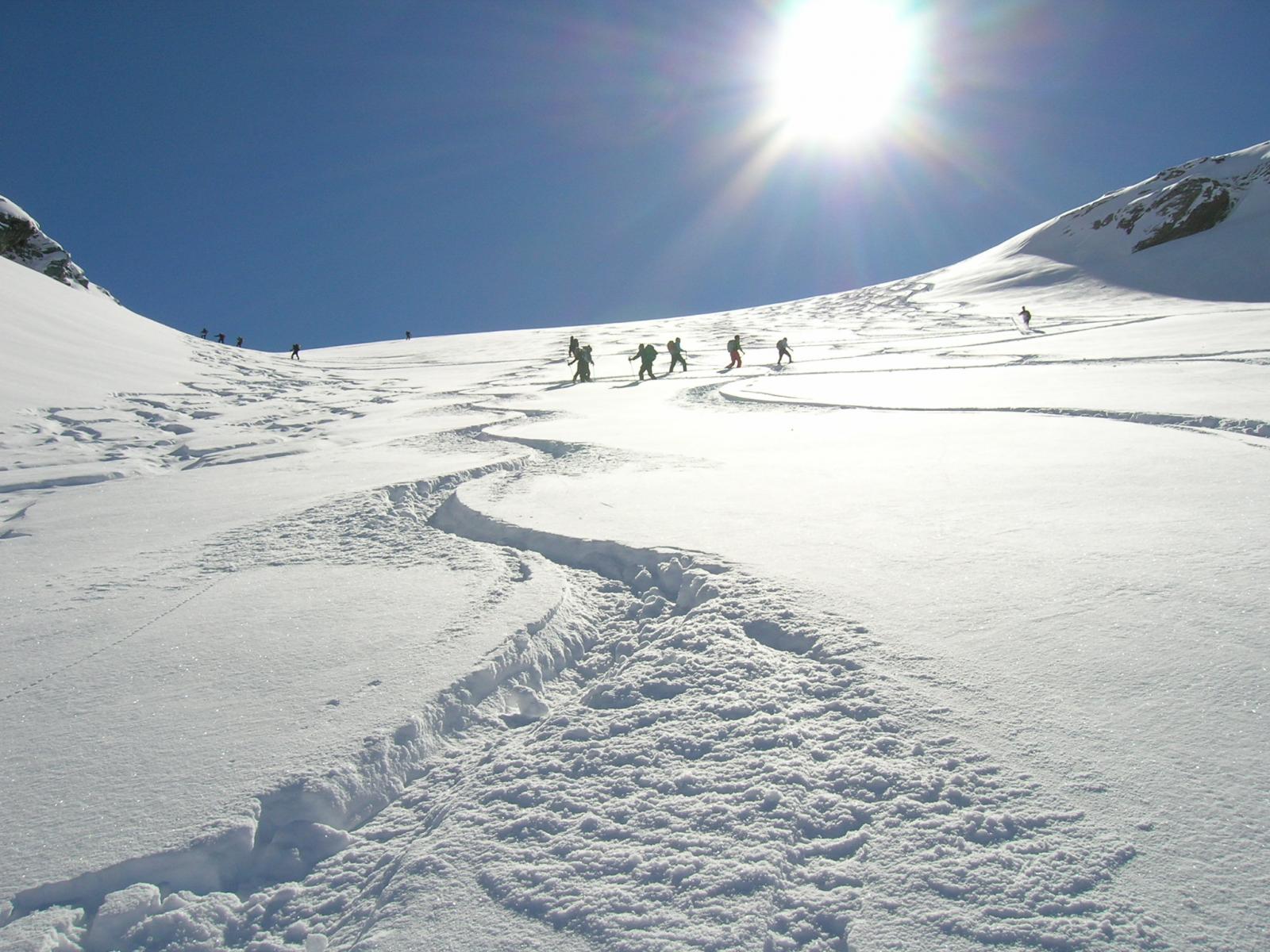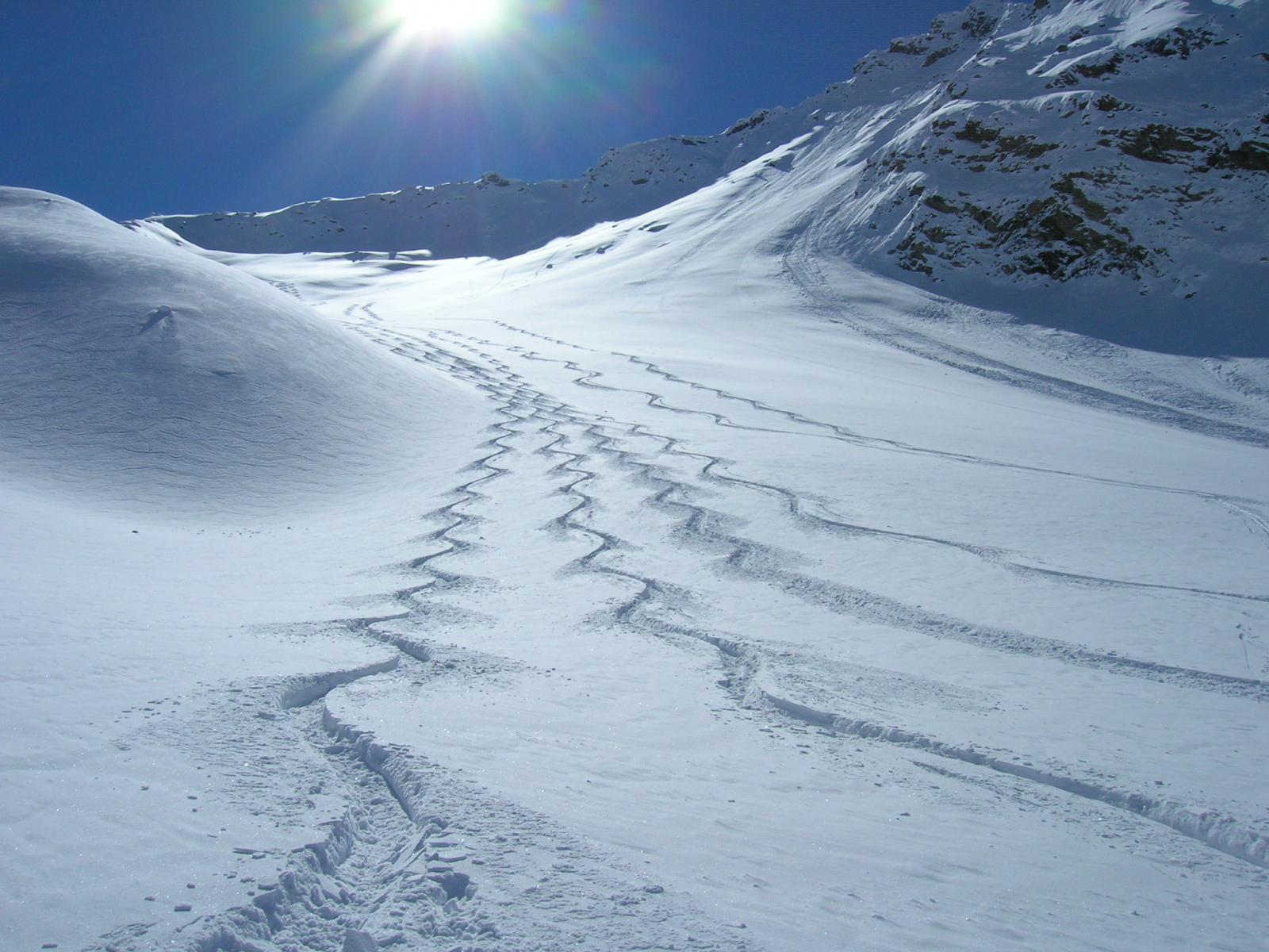 Fantastica.partito le 8.50 con -9° .uscito dal bosco il vallone era già tutto al sole.temperatura gradevole.leggero vento da metà gita in poi.traccia insolitamente tutta a sx (dx orografica)ma ben fatta.sceso abbastanza tra i primi con ancora ampi pendii vergini e fantastica neve farinosa da cima a fondo .circa 10 cm alla partenza e 40-50in alto.meno divertente il bosco in quanto la poca neve non ha coperto le tracce vecchie.tantissima gente .mal contate 90persona .