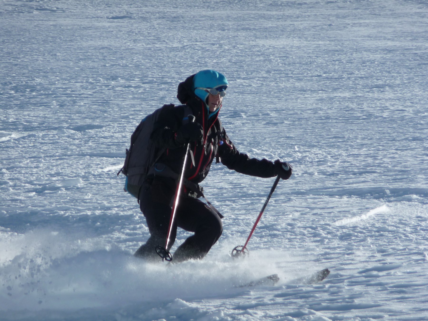 Saliti su buona traccia dei giorni precedenti che nel bosco è una trincea. Leggera brezza da sopra il bosco che comunque non ha disturbato. Neve lavorata dal vento nella parte alta con crosta portante e non, bella la parte centrale dove vi è ancora farinella non tracciata e anche il bosco non male ,siamo stati tutto a destra scendendo trovando tratti intonsi. Ultimi 100m di bosco neve un po’ pesante.