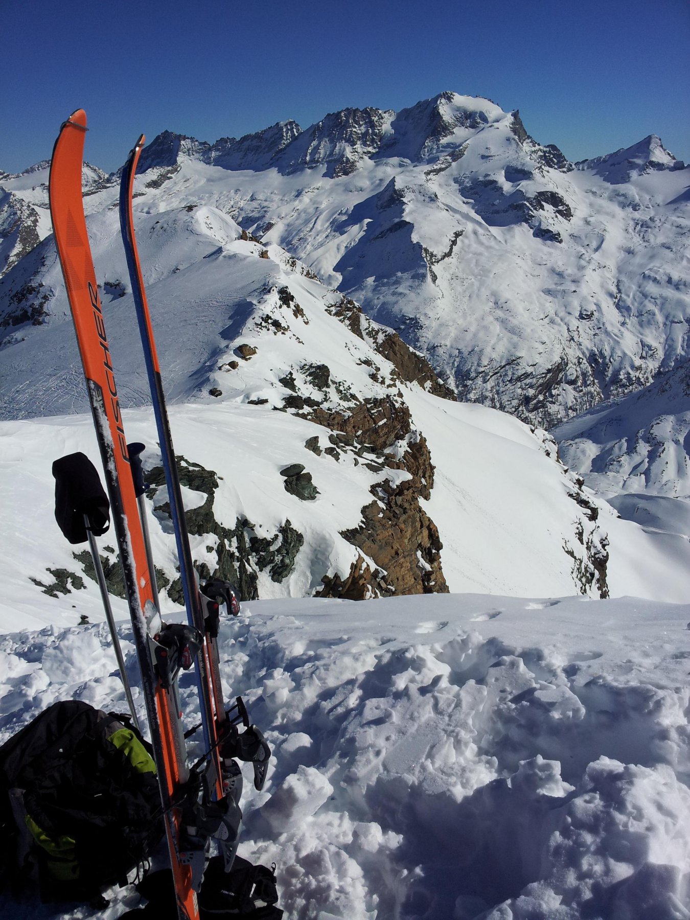 Salita l’anticima Est. Il canalone tra le due cime era carico e l’attenta lettura del bolletino sconsigliava il tentativo.