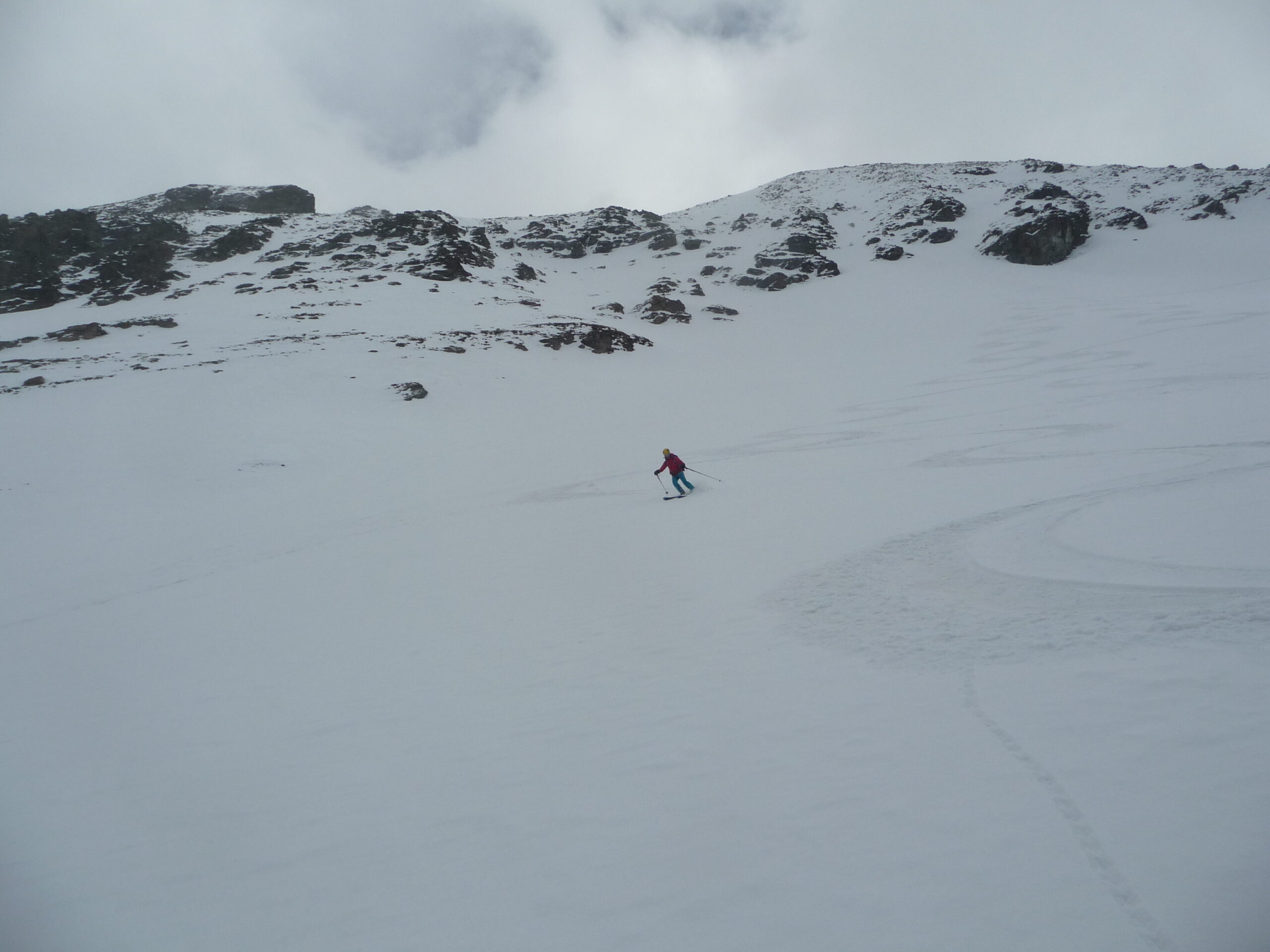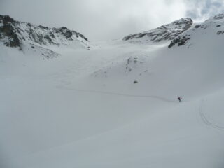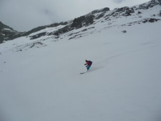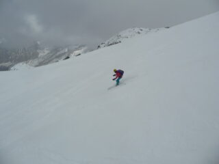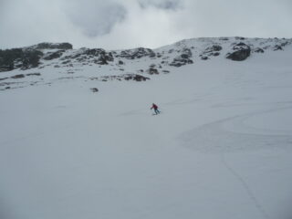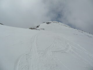 Partiti alle 9.30 passate… con tutta calma quindi ottima traccia fino in vetta di chi ci ha preceduto. La perturbazione ha lasciato qualche millemetro di neve nuova in basso e 5cm in alto. Discesa stando tutto a destra molto piacevole dalla farinella su fondo duro alla primaverile trasformata in basso. Anche il bosco divertente toboga.