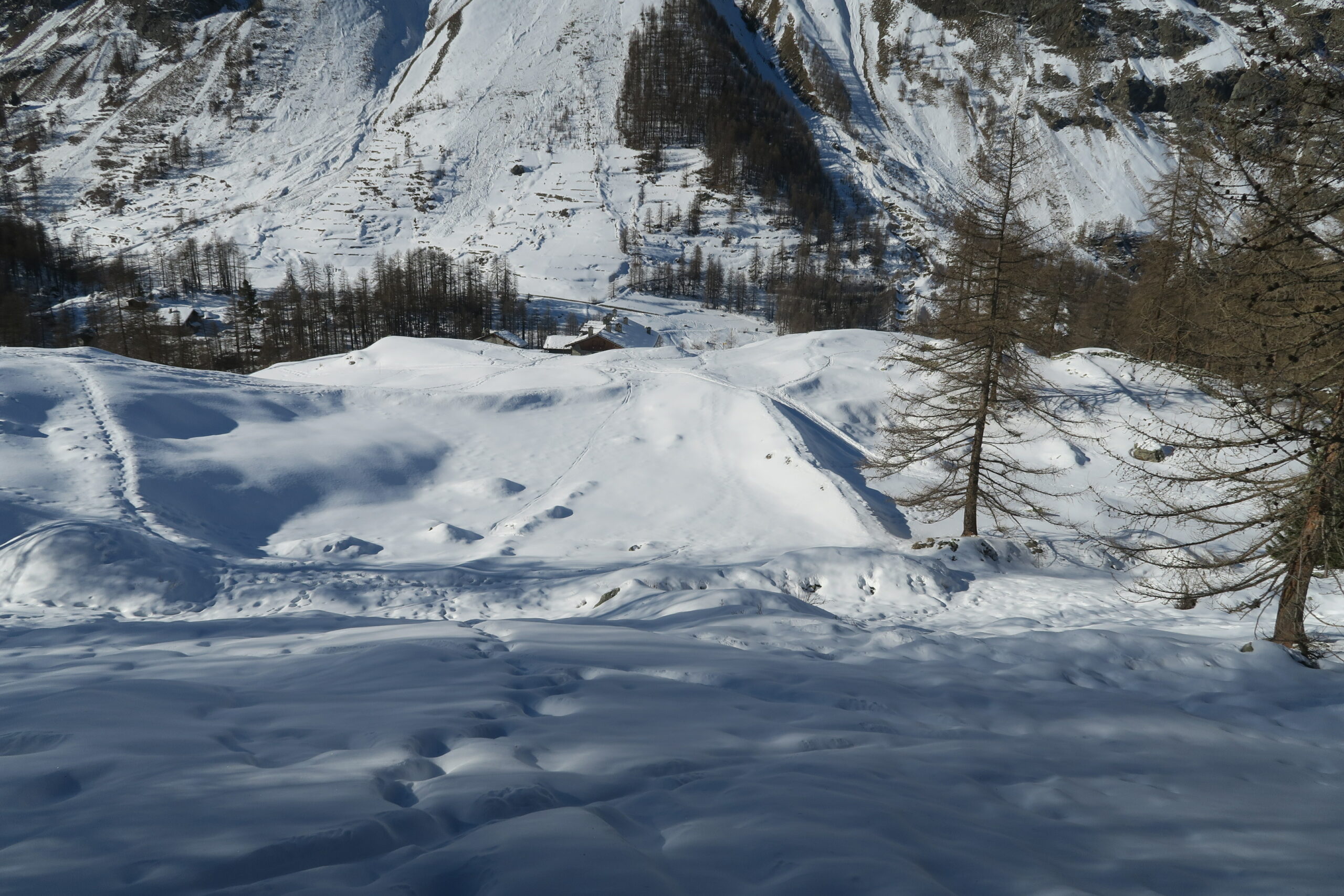 Discesa meglio del previsto cercando le zone più lisce in alto e quelle dove il vento non si era dato troppo da fare.