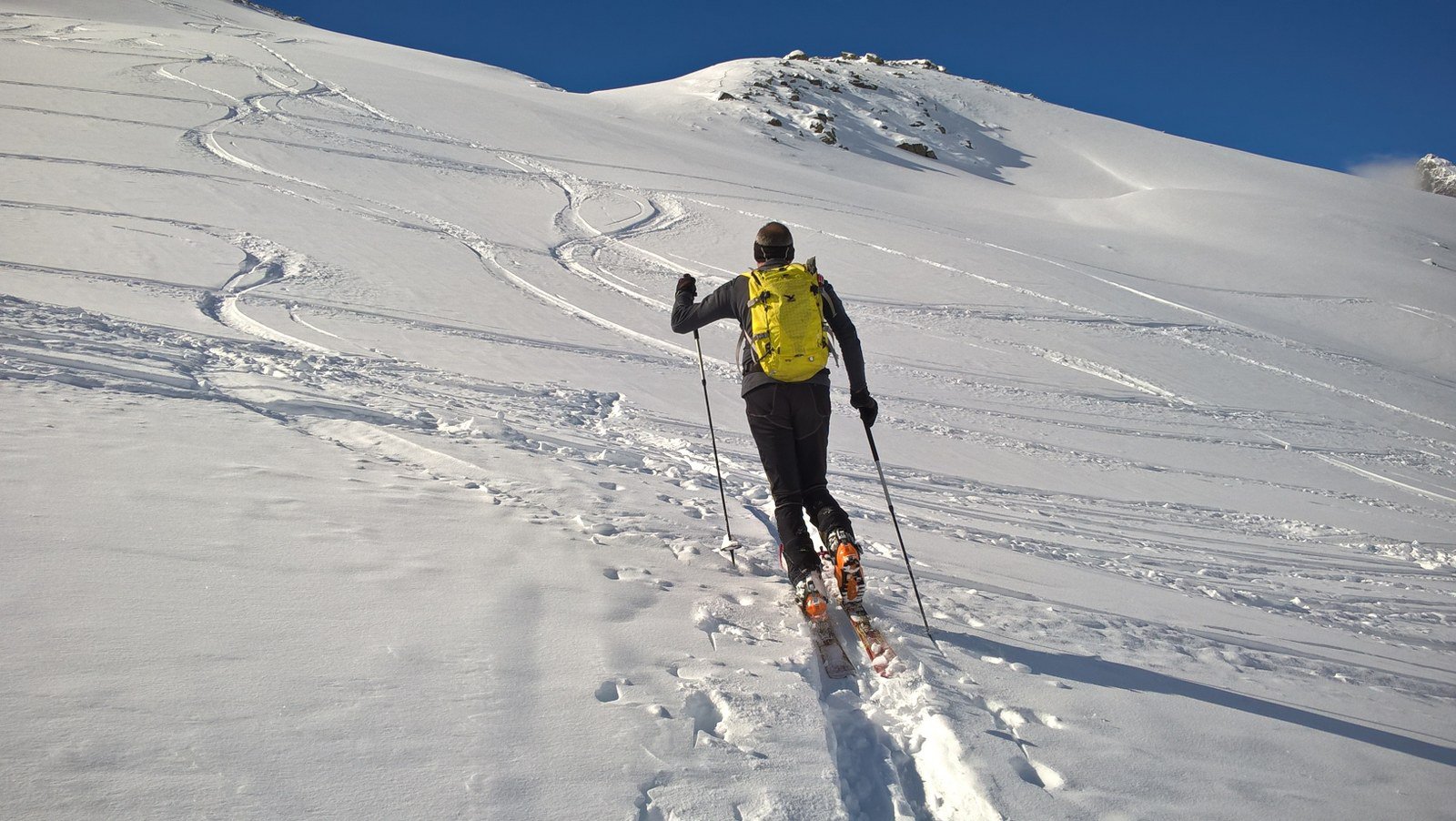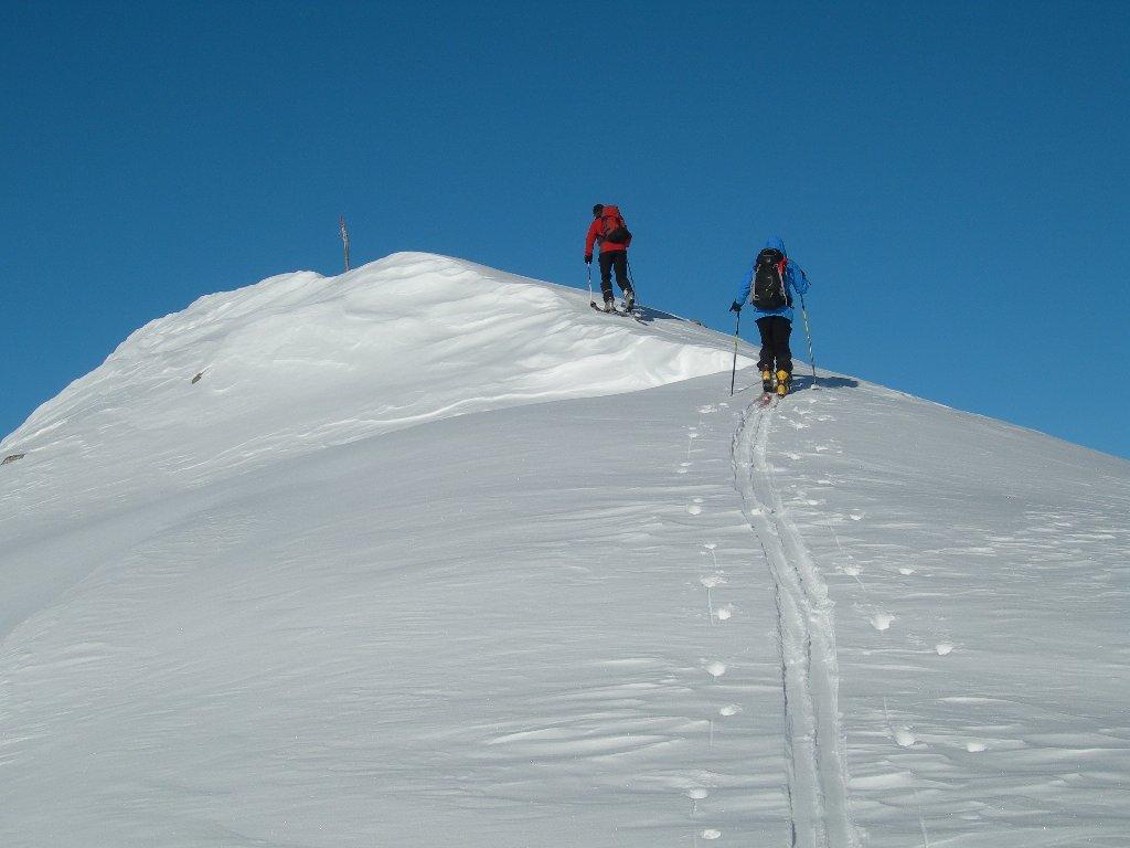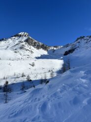 In alternativa poco prima della casa di caccia 2294 m, girare a destra e puntare alla q. 2506 (a Ovest della punta), poi per la dorsale Ovest in punta.