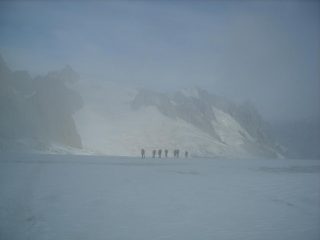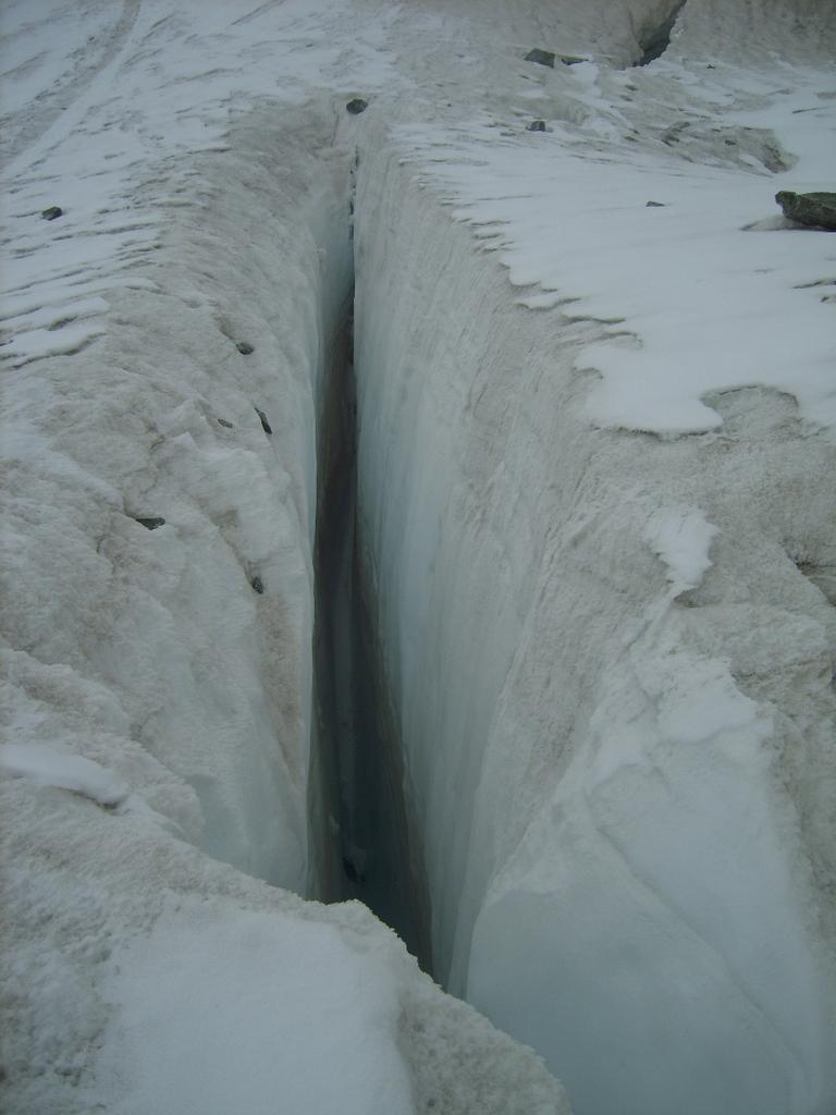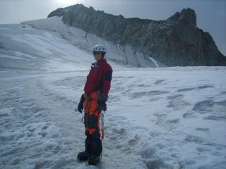 Saliti al rifugio torino con la seconda funivia. Appena usciti furi dal rifugio già in lontananza si vedevo le prime nuvole. Siamo partiti lo stesso con l’idea al massimo di andare fino al colle, è così è stato. Arrivati sotto la parete nel giro 10 minuti si è coperto tutto. Numerose cordate già in punta e un altro paio di cordate alla partenza. Nell’avvicinamento molti crepacci aperti due dei quali da saltare.